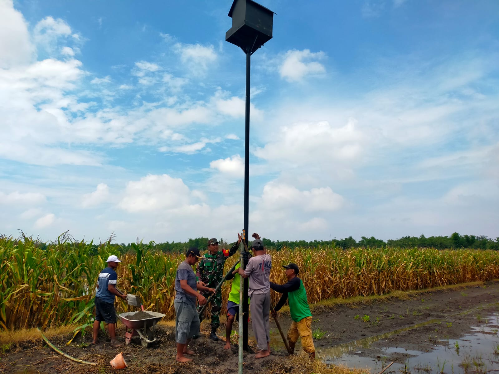 Seperti yang dilakukan Babinsa Sembung Sertu Siswandi bersama para petani Desa Sembung, Kec Karangjati, Kabupaten Ngawi, melakukan pemasangan Pagupon (rumah burung) untuk sarang burung hantu predator pemangsa tikus di sawah, sehingga mengurangi gagal panen akibat hama tikus.