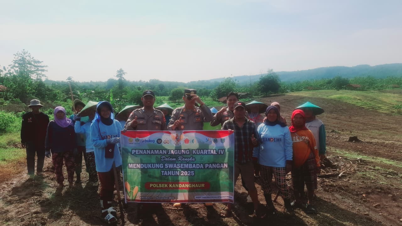 Indramayu – Kapolsek Kandanghaur, Polres Indramayu, Polda Jabar AKP Surahmat, S.Sos., bersama anggota melaksanakan kegiatan penanaman jagung milik Polsek Kandanghaur, Selasa (4/11/2025).