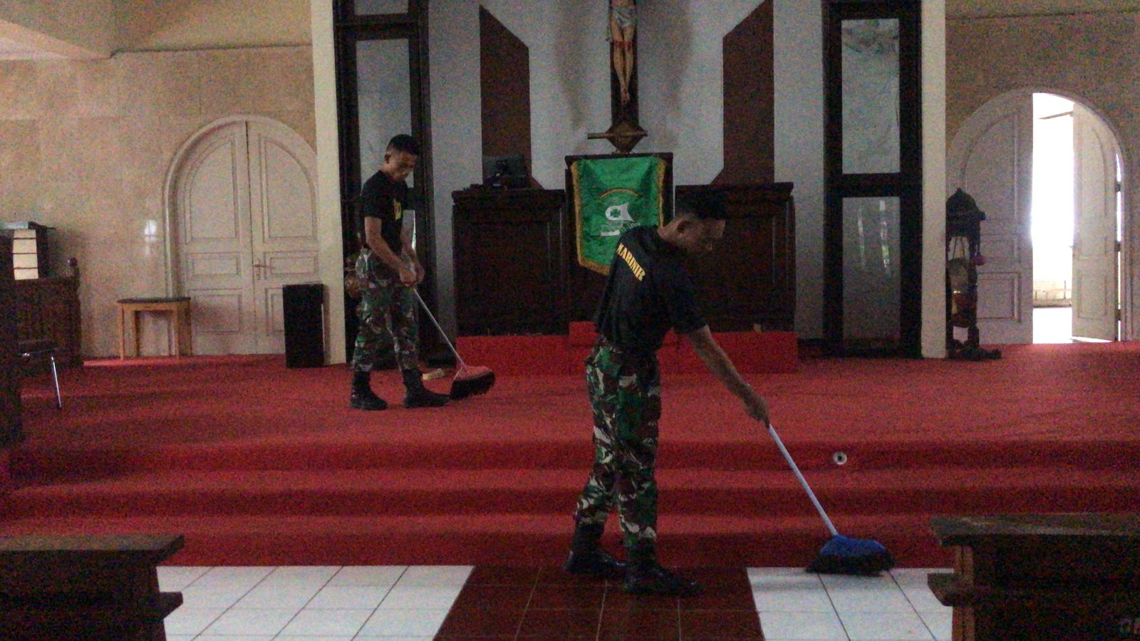 Dengan penuh semangat kebersamaan dan gotong royong, para prajurit Yonif 2 Mar membersihkan area dalam dan luar tempat ibadah, mulai dari menyapu, mengepel, merapikan taman, hingga menata lingkungan sekitar agar lebih bersih, nyaman, dan asri.