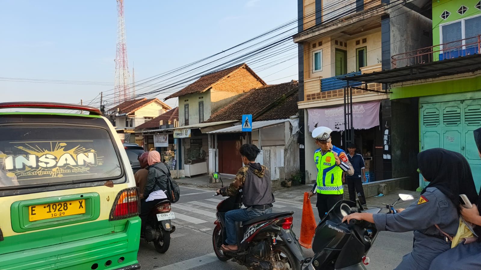 Majalengka – Polsek Cikijing Polres Majalengka Polda Jabar terus berupaya memastikan kelancaran arus lalu lintas serta meningkatkan keamanan dan keselamatan pengguna jalan. Anggota Satlantas Bripda Thoriq melaksanakan Pelayanan Gatur Lalin di Jl. Raya Cikijing-Talaga, tepatnya di depan SDN Sukamukti II, Rabu (05/11/2025).