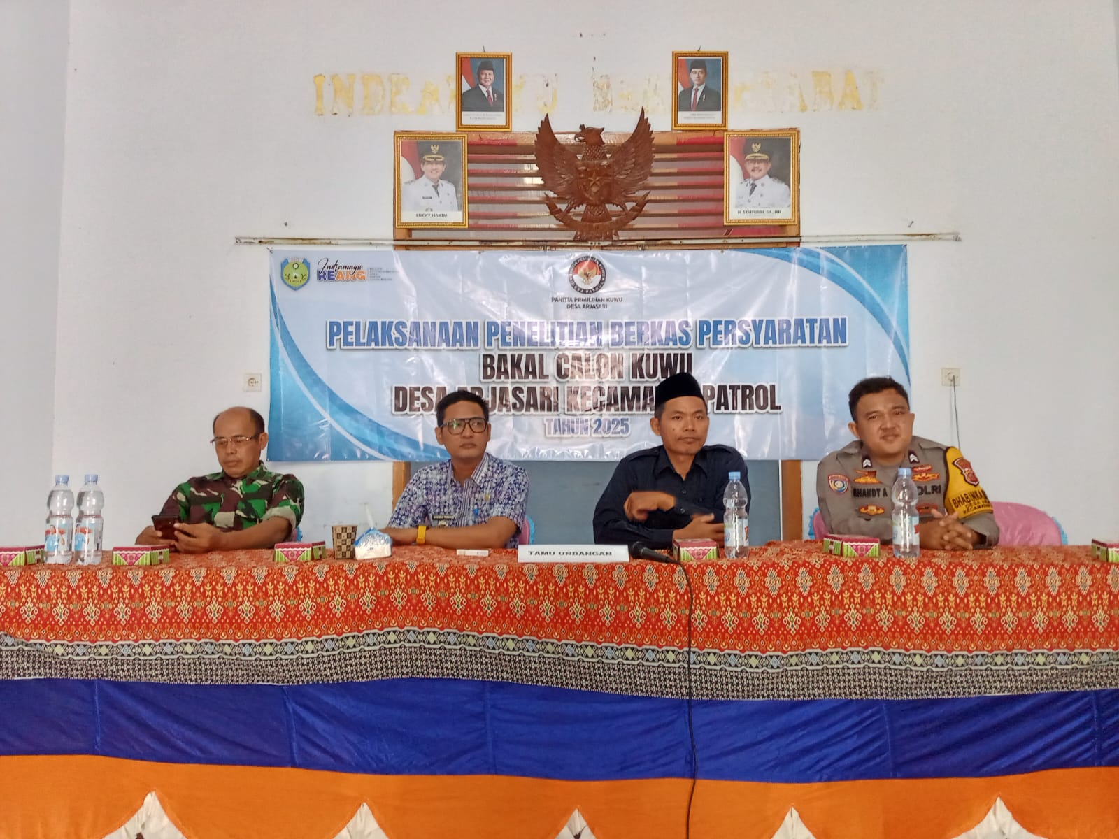 Indramayu – Suasana terlihat di Sekretariat Pemilihan Kuwu Desa Arjasari, Kecamatan Patrol, Kamis (13/11/2025) pagi.