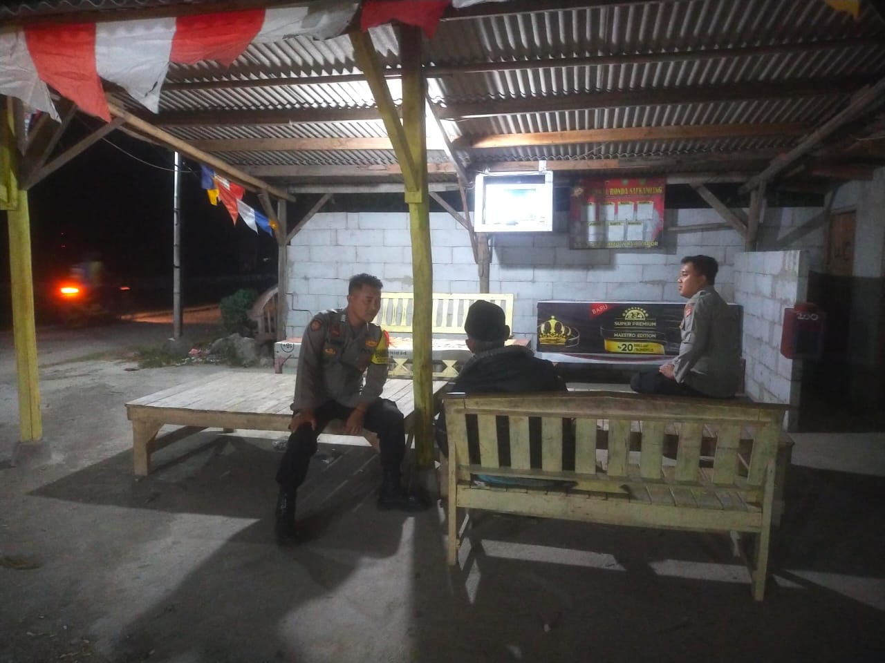 Dalam kegiatan itu, para petugas tampak berdialog dengan anggota Satkamling yang sedang berjaga. Suasana pos ronda terlihat aktif dengan keberadaan perlengkapan patroli serta sarana komunikasi yang digunakan warga untuk memantau situasi lingkungan.