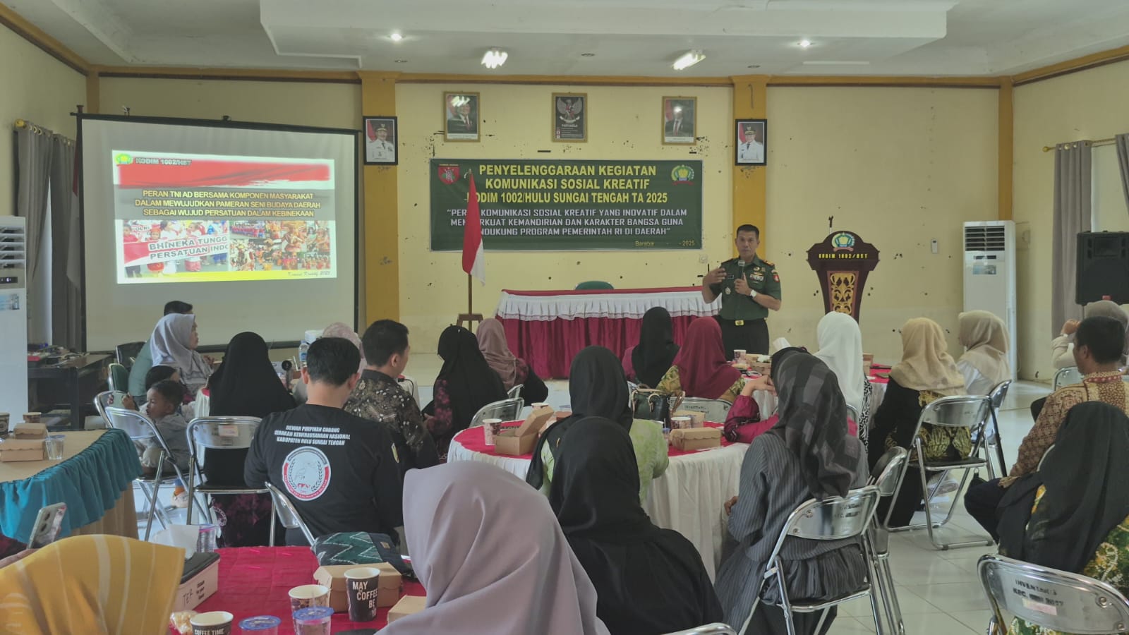 BARABAI, BUSERJATIM.COM GROUP – Kodim 1002/Hulu Sungai Tengah (HST) menggelar kegiatan Komunikasi Sosial (Komsos) Kreatif Tahun Anggaran 2025 dengan mengusung tema “Peran Komunikasi Sosial Kreatif yang Inovatif dalam Memperkuat Kemandirian dan Karakter Bangsa guna Mendukung Program Pemerintah Republik Indonesia di Daerah”. Kegiatan tersebut berlangsung di Aula Kecamatan Barabai, Jalan Bintara Barabai, Rabu (19/11/2025).