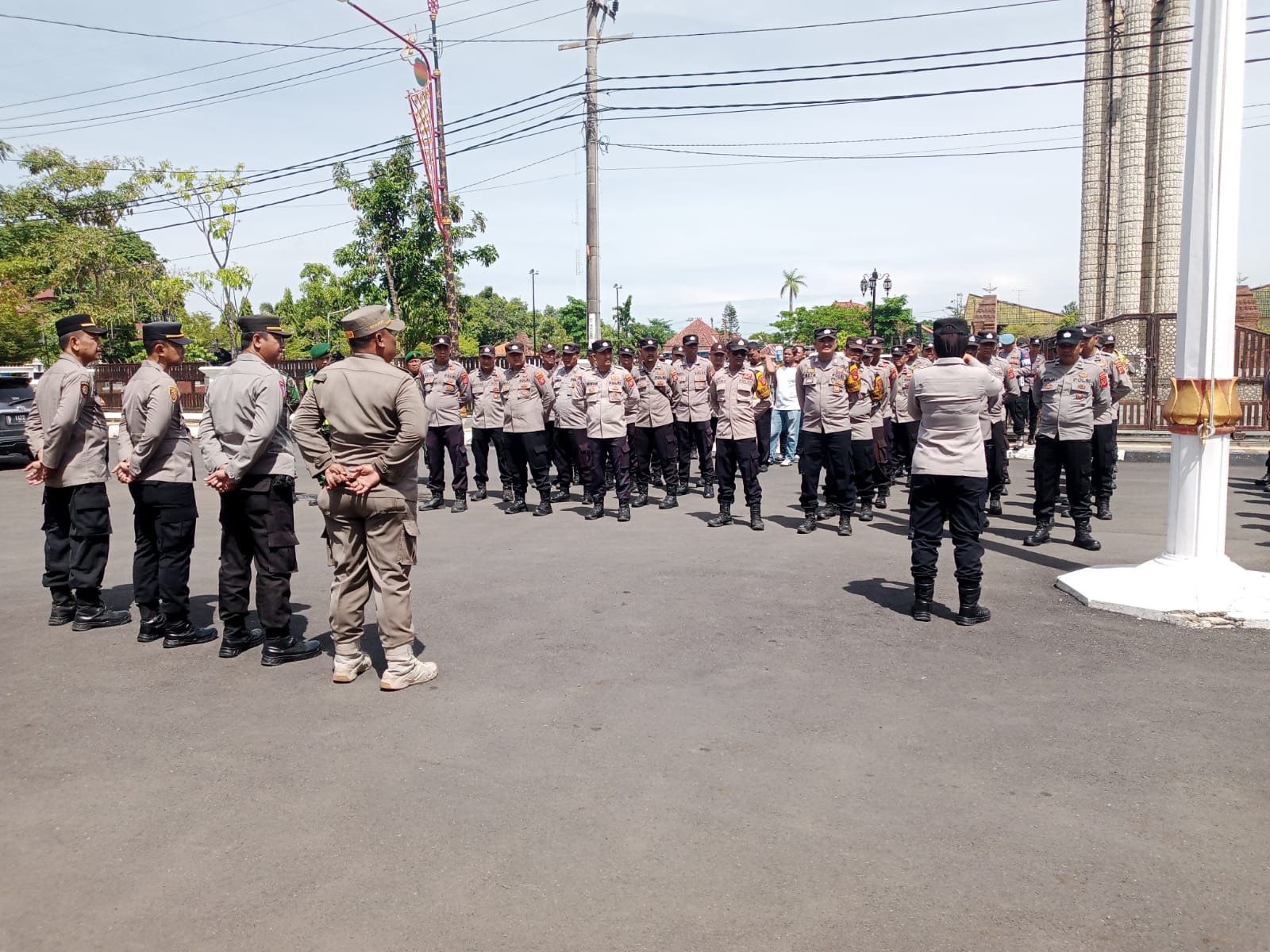 “Kita layani masyarakat yang menyampaikan aspirasi dengan santun dan profesional. Hindari tindakan berlebihan, utamakan cara-cara yang menyejukkan. Tugas kita memastikan situasi tetap kondusif,” tegasnya.