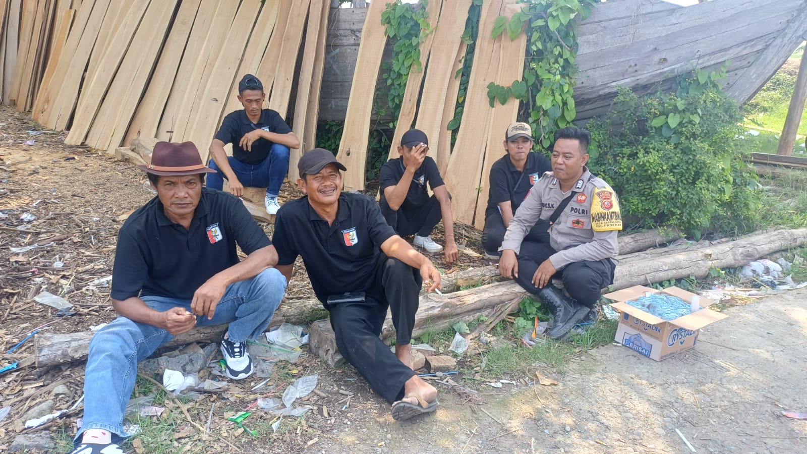 Dalam suasana santai di sekitar area kerja warga, Bripka Rudy berdialog dan memberikan imbauan agar masyarakat tetap menjaga kondusifitas wilayah.