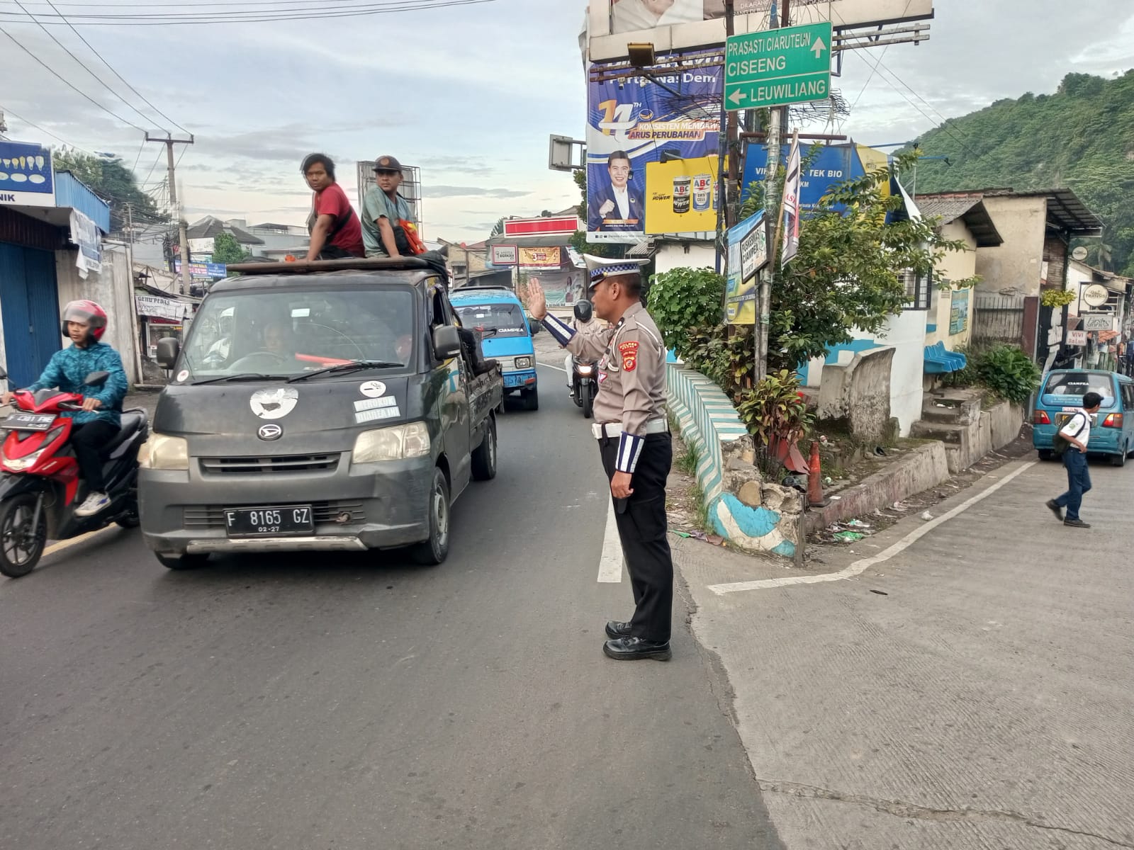 Anggota Polsek Ciampea Polres Bogor Laksanakan Pengaturan Lalu Lintas Pagi Hari