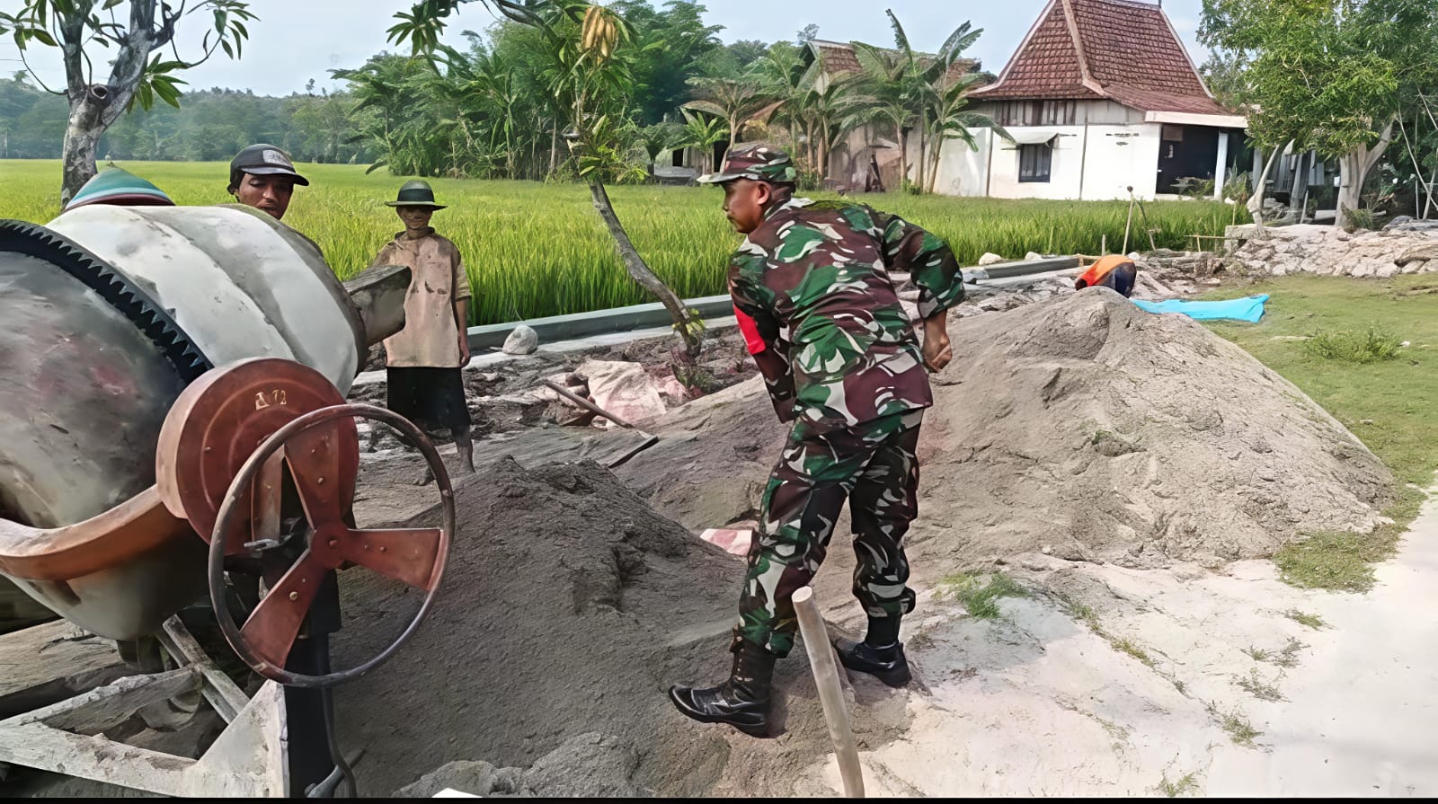 Babinsa Pilangkenceng Turun Tangan Dukung Pembangunan Sarana Irigasi di Desa Luworo