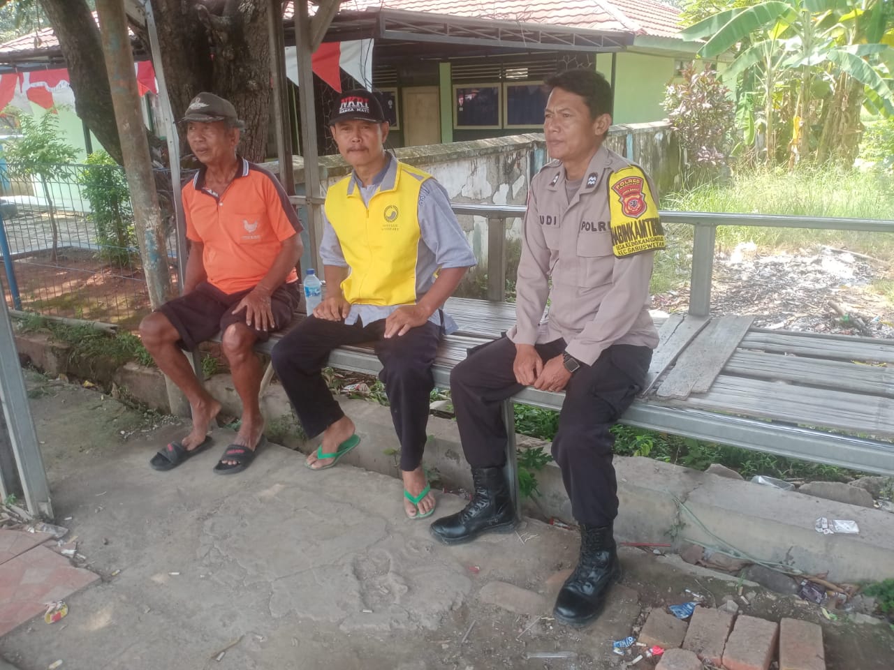 Dalam kunjungannya, Aiptu Rudiyanto tampak berbincang santai dengan warga setempat.