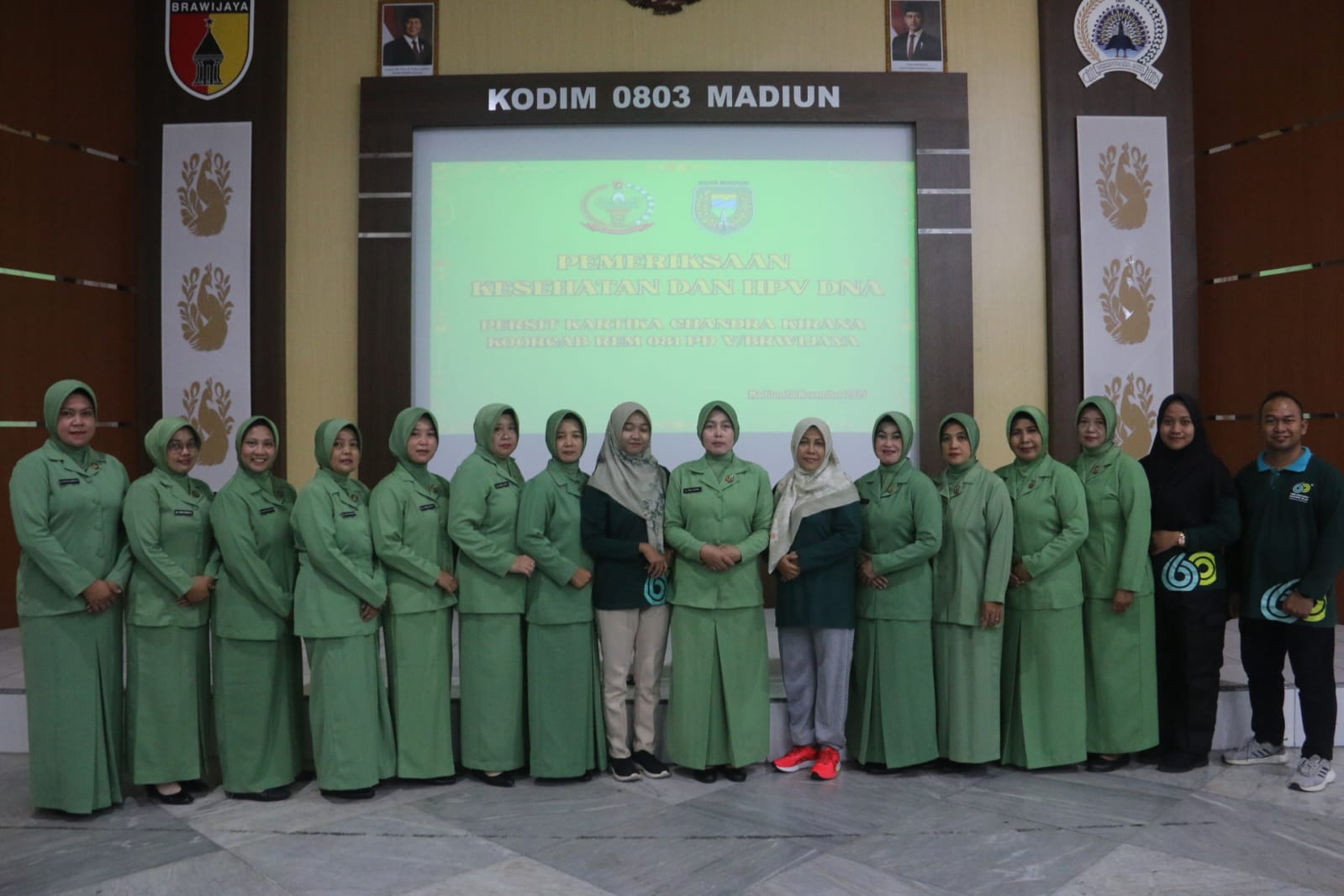 Kegiatan tersebut diikuti para anggota Persit dan masyarakat perempuan di lingkungan Kodim 0803/Madiun. Pemeriksaan kesehatan umum serta skrining HPV DNA ini dilakukan bekerja sama dengan tenaga medis setempat.