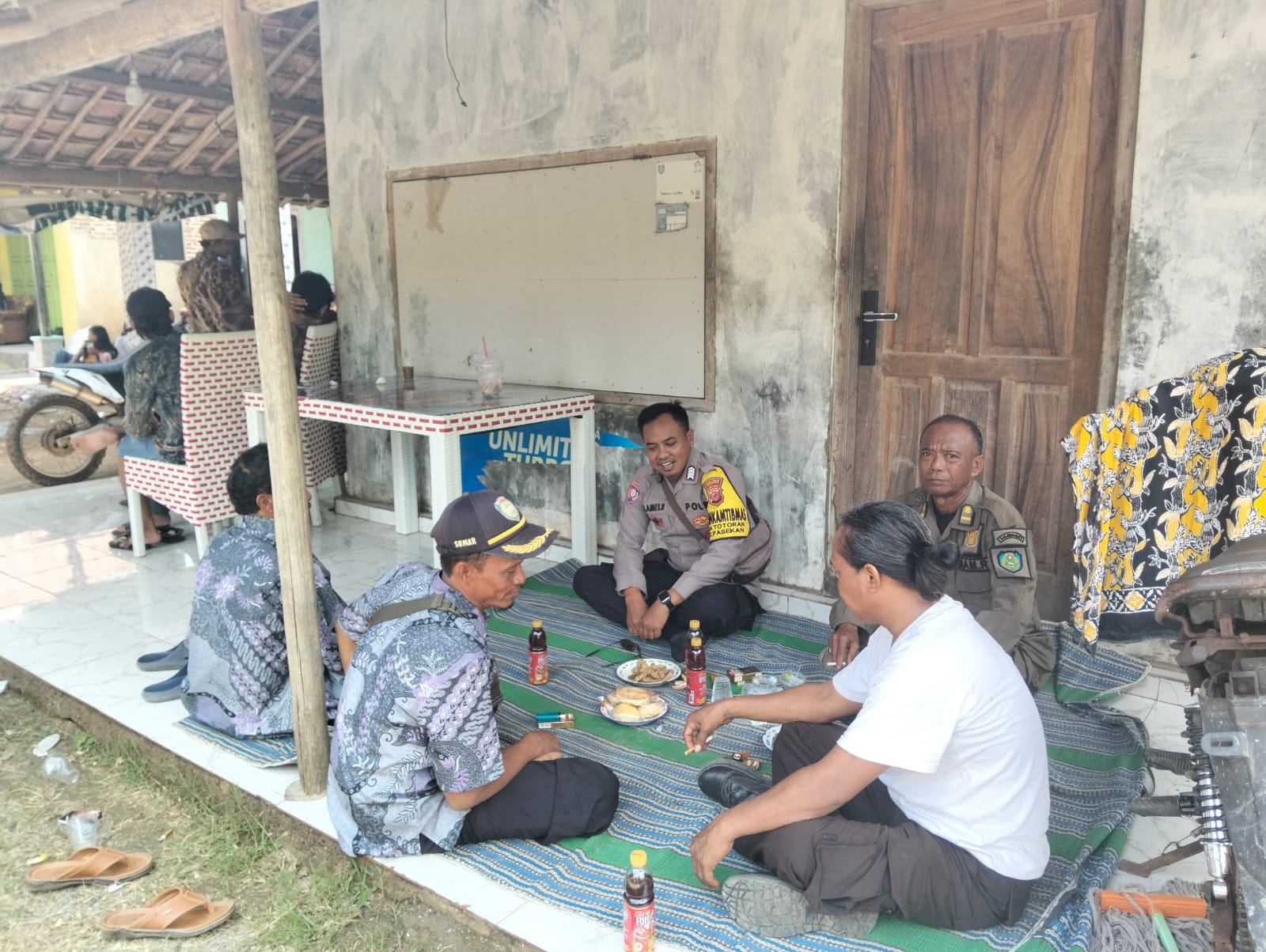 Kegiatan sambang yang dilakukan di salah satu rumah warga tersebut berlangsung santai namun penuh makna. Bripka Slamet tampak berdialog langsung dengan masyarakat, didampingi perangkat desa serta petugas linmas setempat.