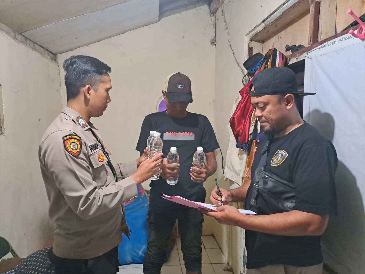 Dari hasil pemeriksaan, petugas menemukan miras beralkohol dalam kemasan botol kecil yang dijual oleh seorang berinisial H (38), warga setempat.