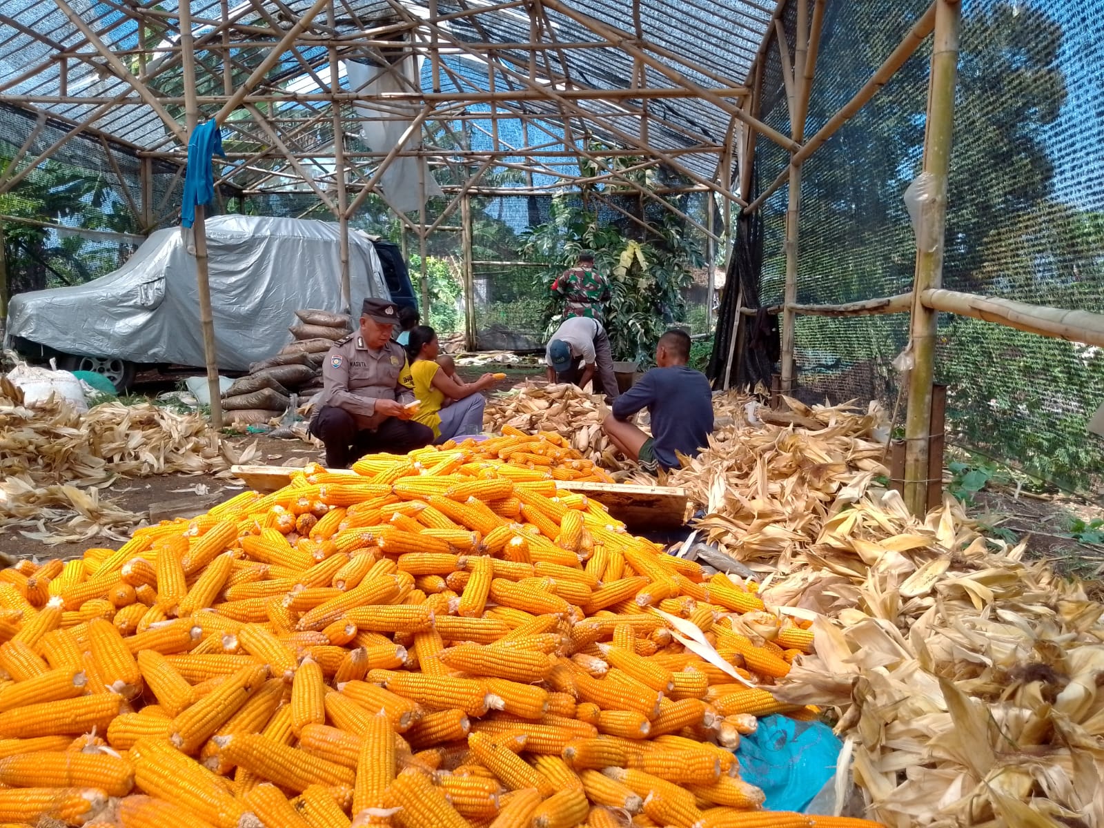 Sinergitas TNI-POLRI, Polsek Rumpin Polres Bogor dengan Babinsa Laksanakan Sambang Warga dan Panen Jagung Hibrida di Desa Mekarsari