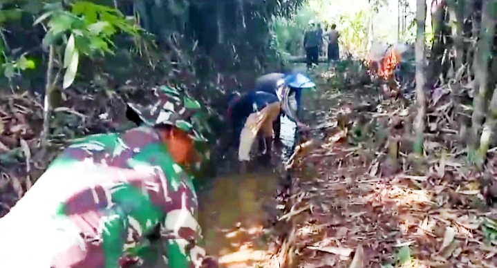 PONOROGO,BUSERJATIM.COM GROUP,-Anggota Koramil Tipe C 0802/18 Sooko, Kodim 0802/Ponorogo hari ini melaksanakan kerja bakti bersama warga Dukuh Jetis Desa Bedoho Kecamatan Sooko Kabupaten Ponorogo, Kamis (04/12/2025).