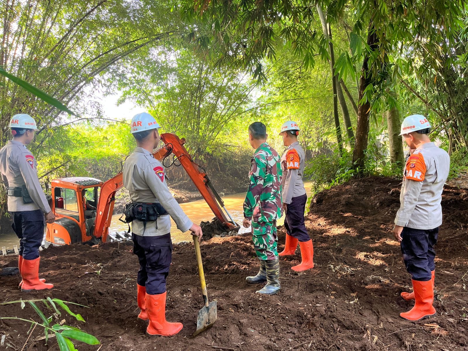 Tim SAR Brimob Jabar melakukan penyisiran sepanjang bantaran sungai, membersihkan area rawan serta memetakan titik – titik yang berisiko menimbulkan genangan. Tidak hanya itu, mereka juga berkoordinasi dengan aparat desa dan masyarakat sekitar untuk mengidentifikasi kebutuhan lanjutan terkait mitigasi banjir.
