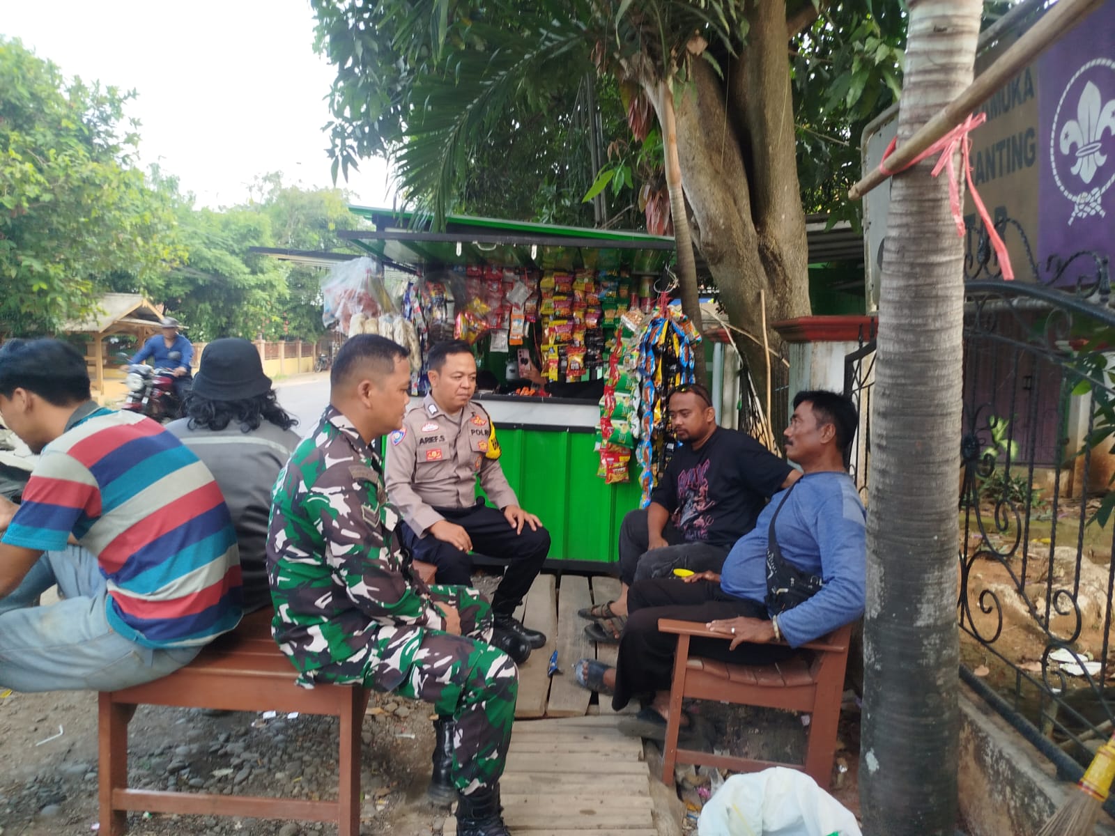Dalam kegiatan tatap muka tersebut, tampak keduanya duduk dan berdialog langsung dengan warga yang sedang berkumpul di sekitar warung.