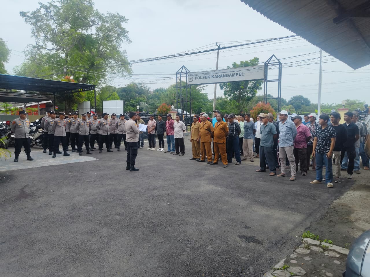 Seluruh personel dikumpulkan untuk memastikan kesiapan mental, fisik, serta pemahaman tugas agar pengamanan Pilwu di Kecamatan Karangampel berjalan aman dan kondusif.
