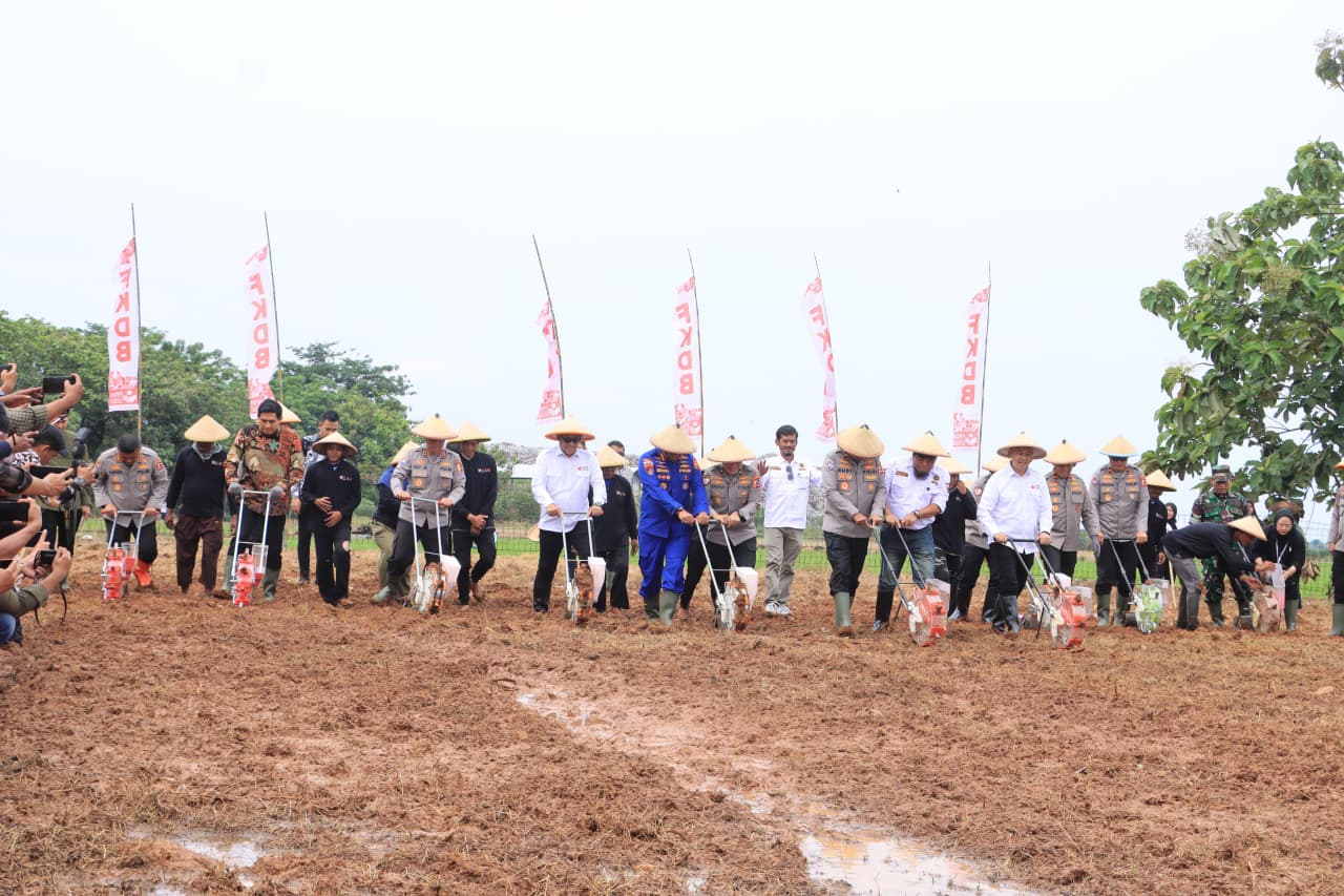 Baharkam Polri bersama Forum Komunikasi Doa Bangsa (FKDB) melaksanakan penanaman perdana jagung dan penyerahan bibit kepada kelompok tani di Kabupaten Indramayu, Kamis (11/12/2025).