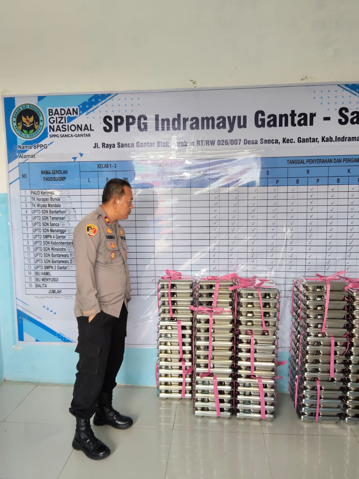 Dalam kegiatan tersebut, Kapolsek Gantar IPTU Karnala, S.H. berkoordinasi langsung dengan Kepala Dapur SPPG Sanca, Koordinator Lapangan SPPG, serta Ahli Gizi SPPG Sanca.