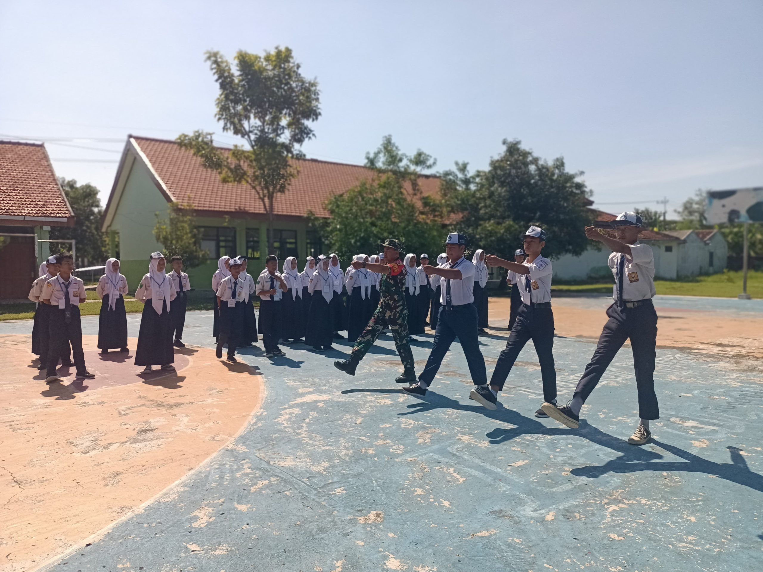 Materi disampaikan secara teori di aula dan dilanjutkan dengan praktik langsung di lapangan sekolah. Para peserta tampak antusias mengikuti setiap arahan yang diberikan, baik saat menerima penjelasan maupun saat melaksanakan latihan.