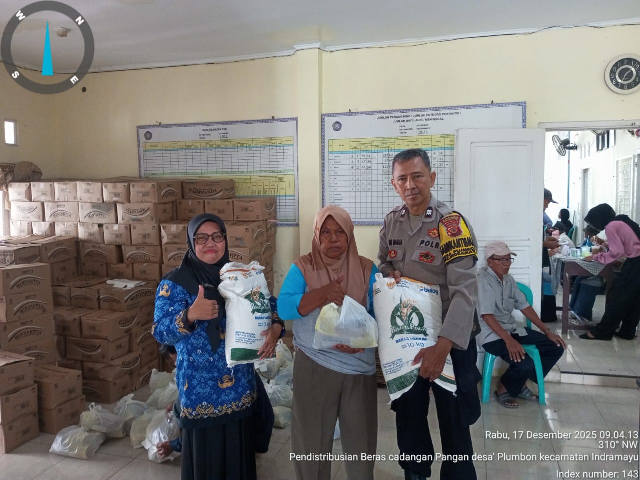 Indramayu – Kepolisian Sektor Indramayu Polres Indramayu Polda Jawa Barat terus hadir mendampingi masyarakat dalam berbagai kegiatan sosial kemasyarakatan. Salah satunya melalui monitoring dan pengamanan penyaluran bantuan pangan kepada warga Desa Plumbon, Kecamatan dan Kabupaten Indramayu, Rabu (17/12/2025).