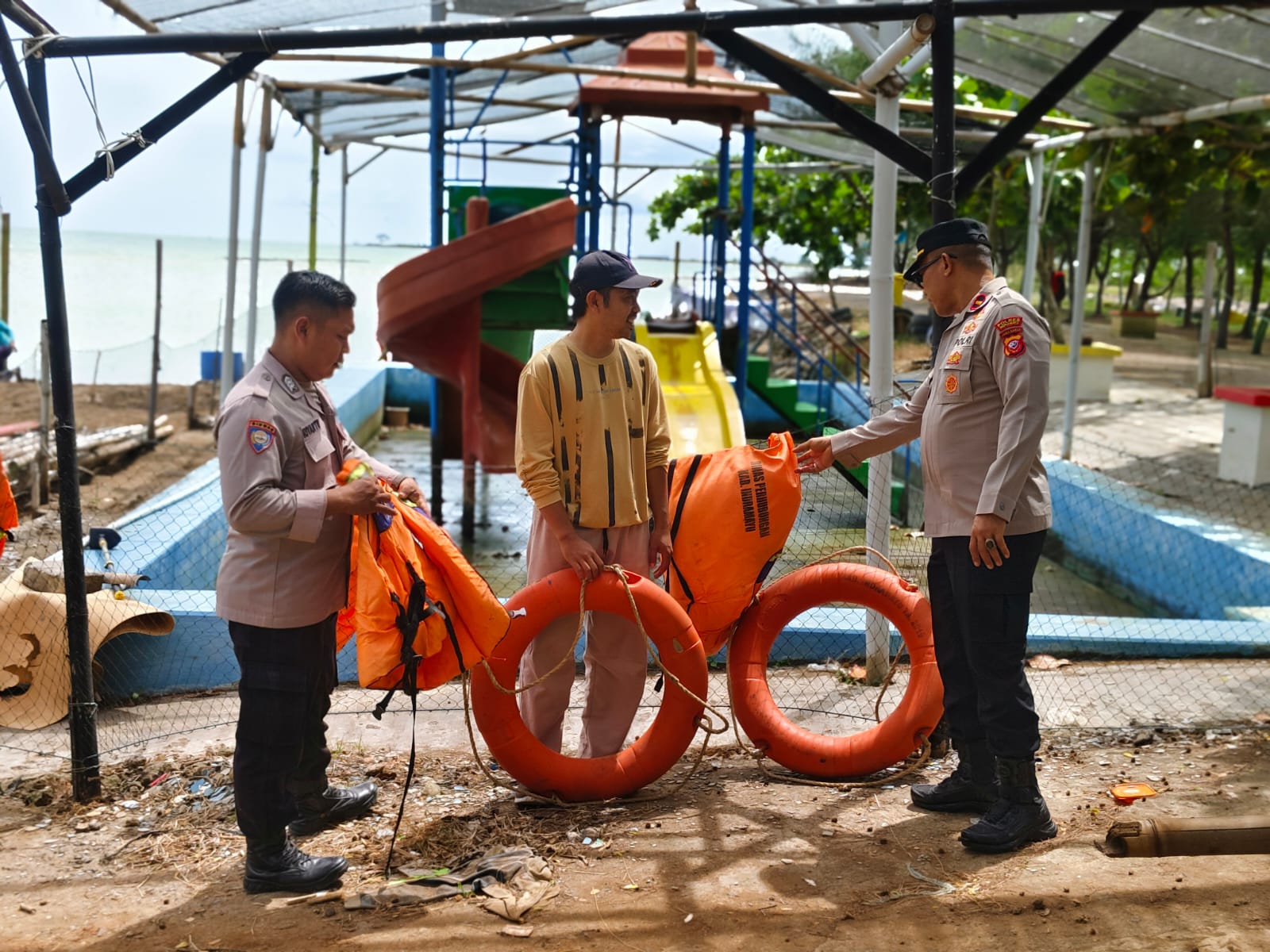 Dari hasil pengecekan di lapangan, petugas menemukan sejumlah sarana keselamatan yang sudah tersedia, seperti alat pelampung di kawasan pantai. Selain itu, petugas juga melakukan pengecekan terhadap area parkir dan kelengkapan pendukung wisata lainnya.