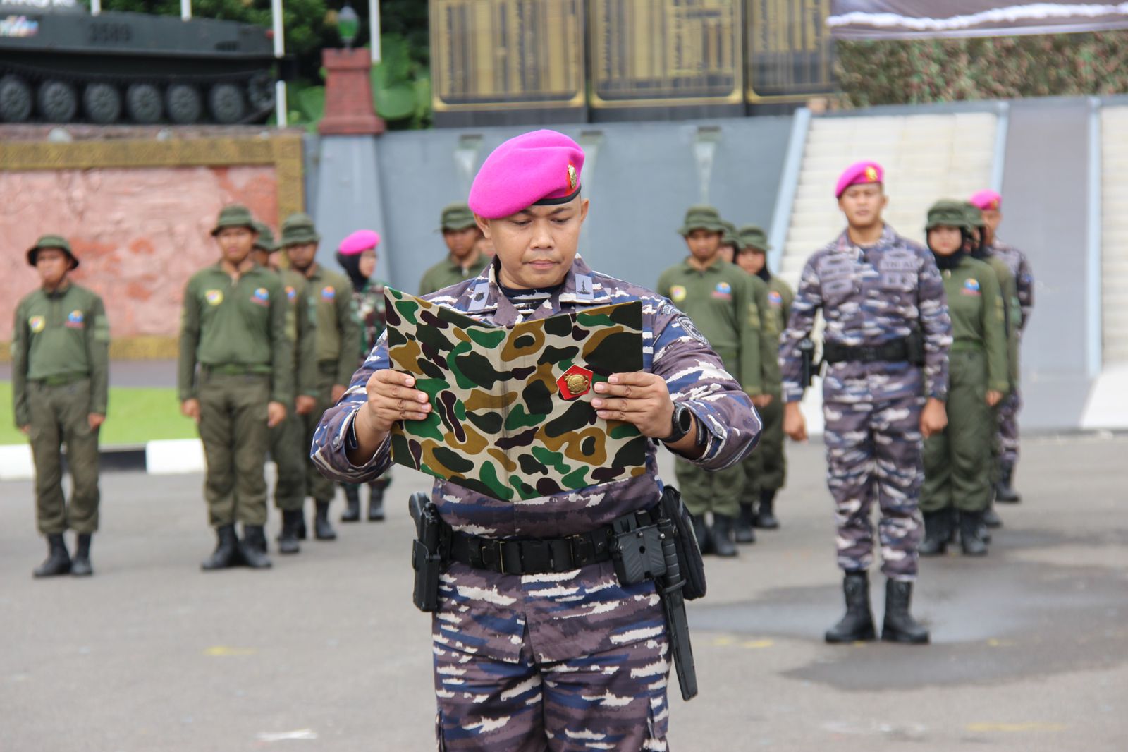 Danyonif 2 Marinir Pimpin Langsung Penutupan Pelatihan Dasar dan Bela Negara Insan Ombudsman T.A 2025