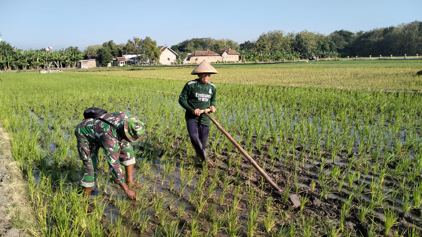 Kegiatan dilaksanakan dengan cara bergotong royong, membersihkan rumput liar di sela-sela tanaman padi agar nutrisi tanah dapat terserap maksimal oleh tanaman. Melalui kegiatan ini, diharapkan sinergi antara TNI dan masyarakat terus terjalin dengan baik serta mampu meningkatkan kesejahteraan petani di Desa Banaran.