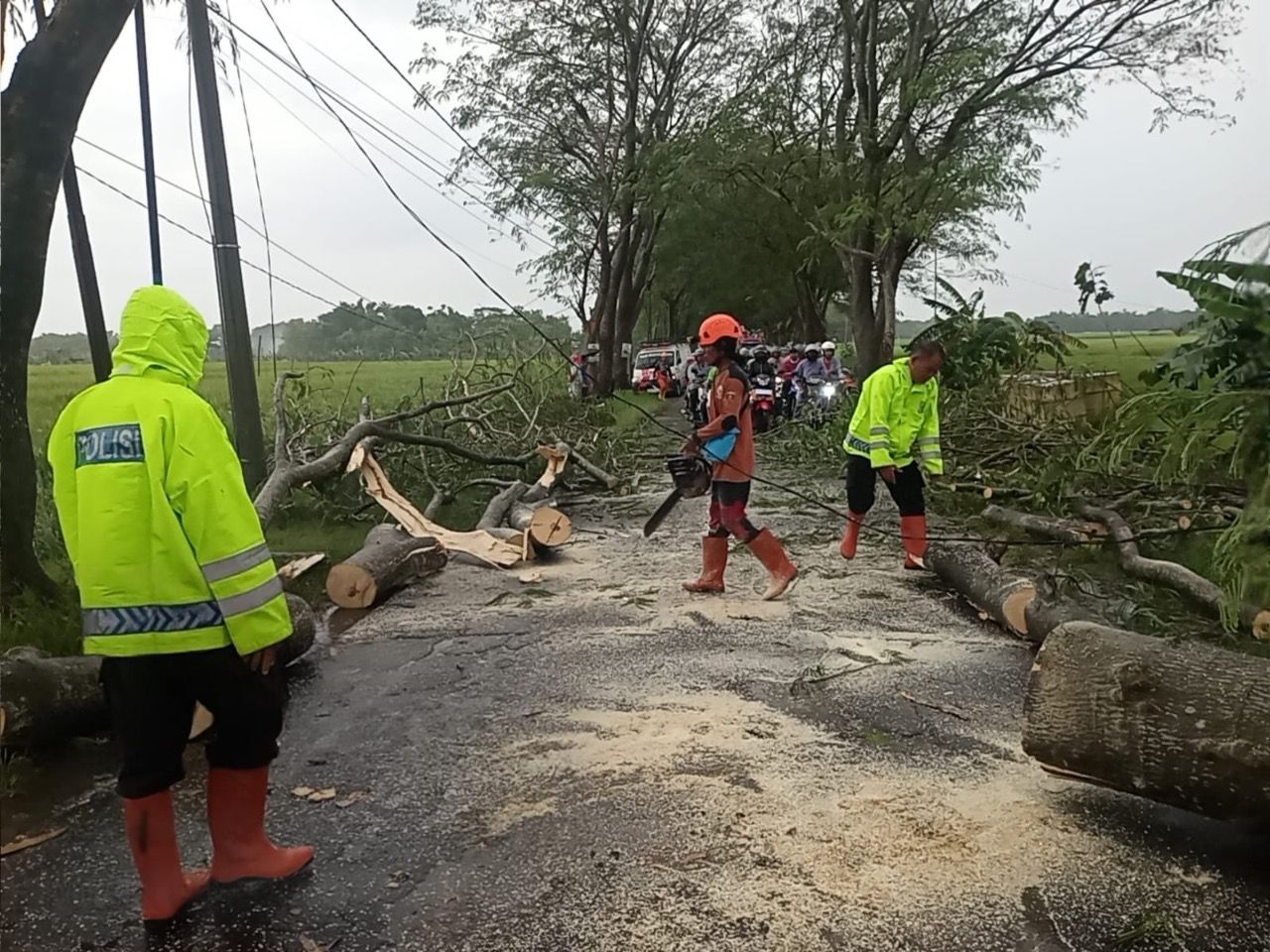 Peristiwa tersebut terjadi pada Sabtu (20/12/2025) sore sekira pukul 15.00 WIB, di pinggir jalan raya jurusan Geneng–Kedungputri Paron, tepatnya masuk Dusun Plampoan I, Desa Geneng. Pohon tumbang sempat menghalangi badan jalan dan menyebabkan arus lalu lintas mengalami kemacetan.