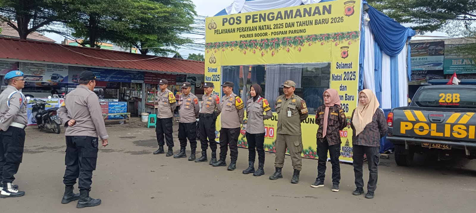 Bogor – Dalam rangka memastikan kesiapsiagaan personel serta kelancaran pengamanan Perayaan Natal 2025 dan Tahun Baru 2026, Polsek Parung melaksanakan Apel Kesiapsiagaan di Pos Pengamanan (Pos Pam) Simpang Parung, Minggu (21/12/2025) pagi.