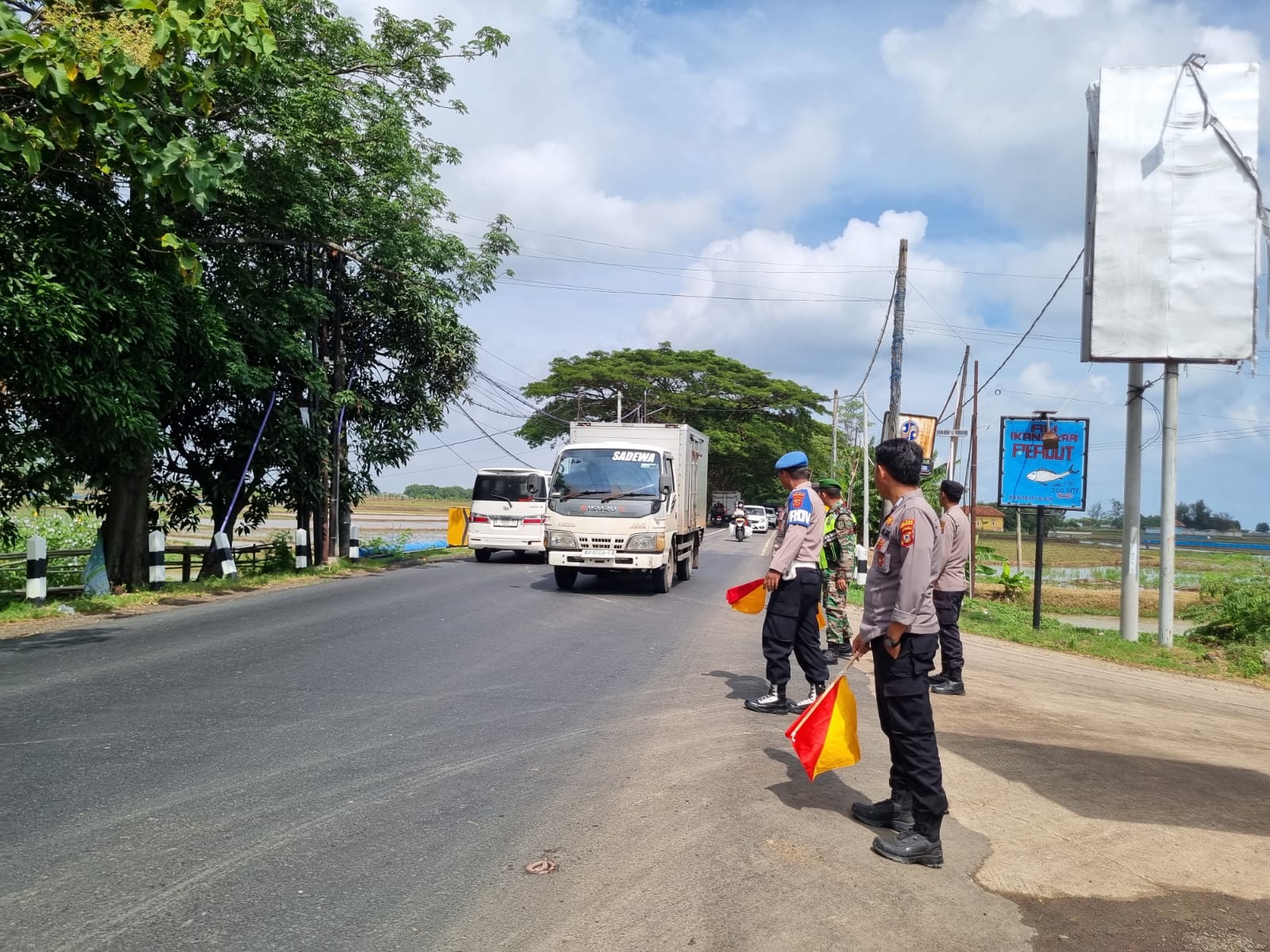 Sejak pagi hari, personel gabungan telah bersiaga di sejumlah titik strategis, khususnya di ruas jalan utama yang menjadi akses menuju Pantai Glayem. Petugas terlihat aktif mengatur arus kendaraan, baik roda dua maupun roda empat, guna mencegah terjadinya kepadatan dan memastikan keselamatan pengguna jalan.