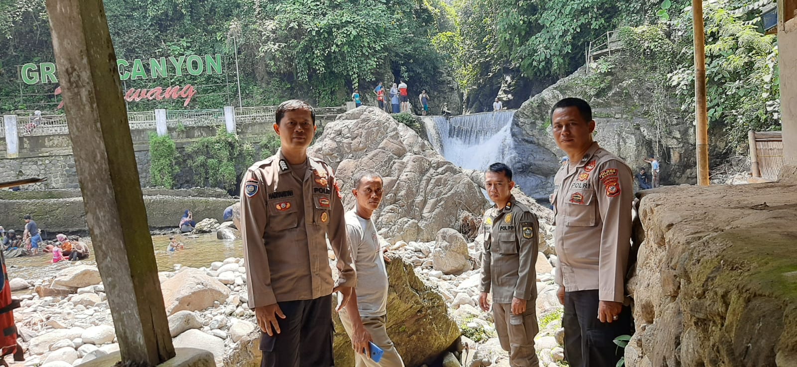 Berdasarkan hasil pengecekan, situasi selama kegiatan berlangsung terpantau aman, tertib, dan kondusif. Jumlah pengunjung yang berada di lokasi wisata Green Canyon diperkirakan sekitar ±20 orang, dan tidak ditemukan adanya gangguan keamanan yang menonjol.