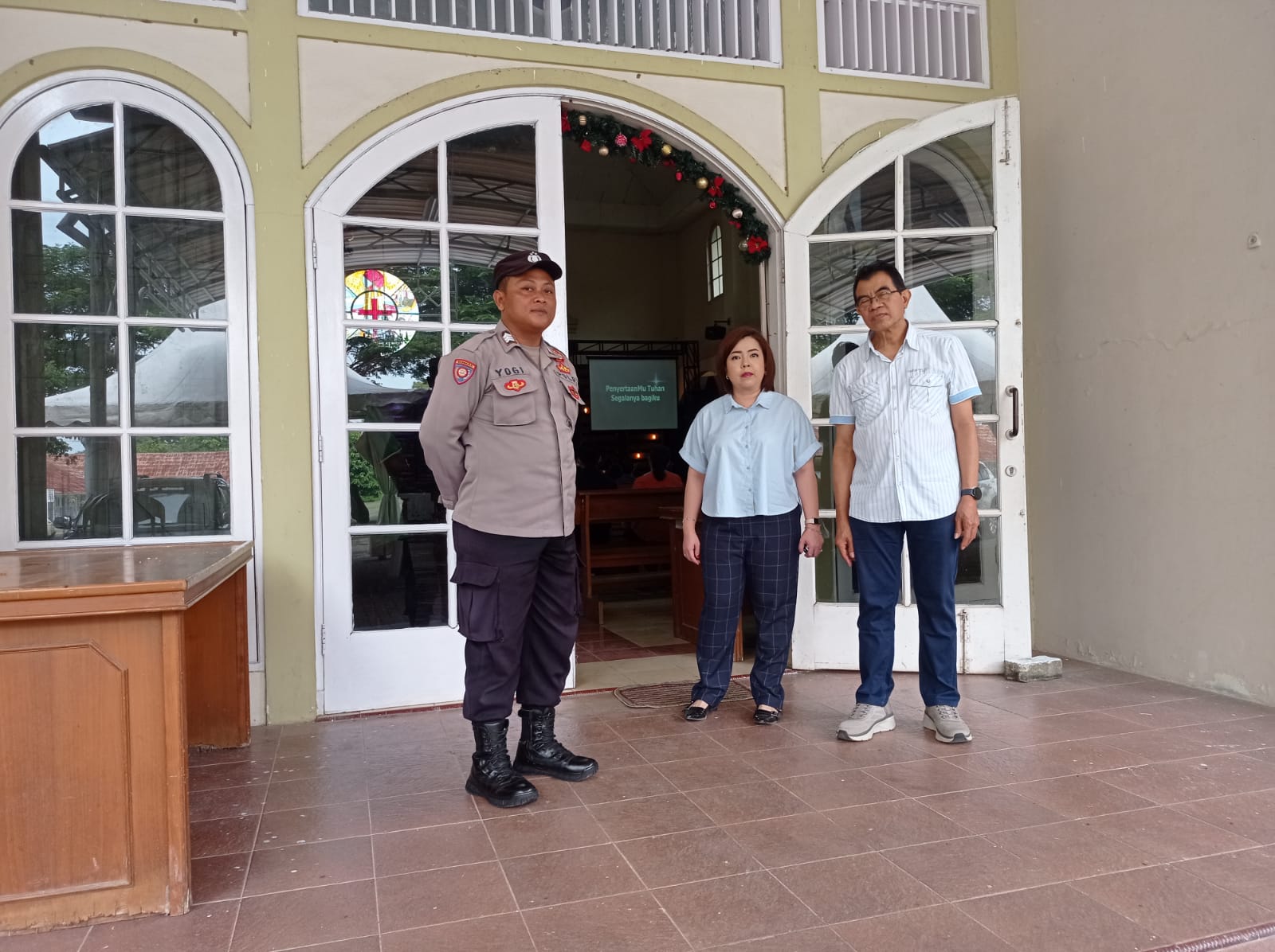 Indramayu – Polsek Pasekan, Polres Indramayu, Polda Jabar melaksanakan pengamanan kegiatan kebaktian Minggu di Gereja Katolik Keluarga Kudus, Desa Totoran, Kecamatan Pasekan, Kabupaten Indramayu, Minggu (28/12/2025).