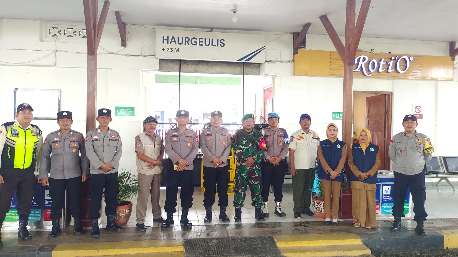 Apel kesiapan tersebut digelar di Pos Pelayanan Stasiun KA Haurgeulis. Kegiatan ini diikuti oleh personel gabungan dari Polri, TNI, Satpol PP serta tenaga kesehatan.