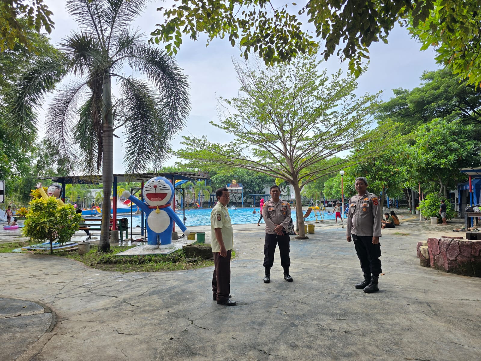 Petugas turut memberikan imbauan secara humanis kepada pengunjung agar selalu waspada, menjaga barang bawaan, serta mengawasi anak-anak saat bermain di kolam renang.