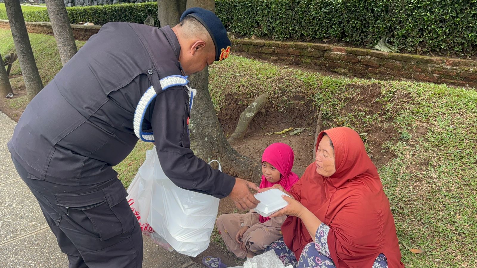 Pada kegiatan tersebut, personel Sat Brimob Polda Jabar turun langsung ke lapangan membagikan makanan siap santap kepada masyarakat, mulai dari warga sekitar, pedagang kaki lima, pengemudi ojek, hingga para pekerja yang melintas. Kehadiran Brimob dengan pendekatan humanis ini disambut antusias oleh masyarakat yang merasakan langsung kepedulian aparat kepolisian di hari penuh berkah.