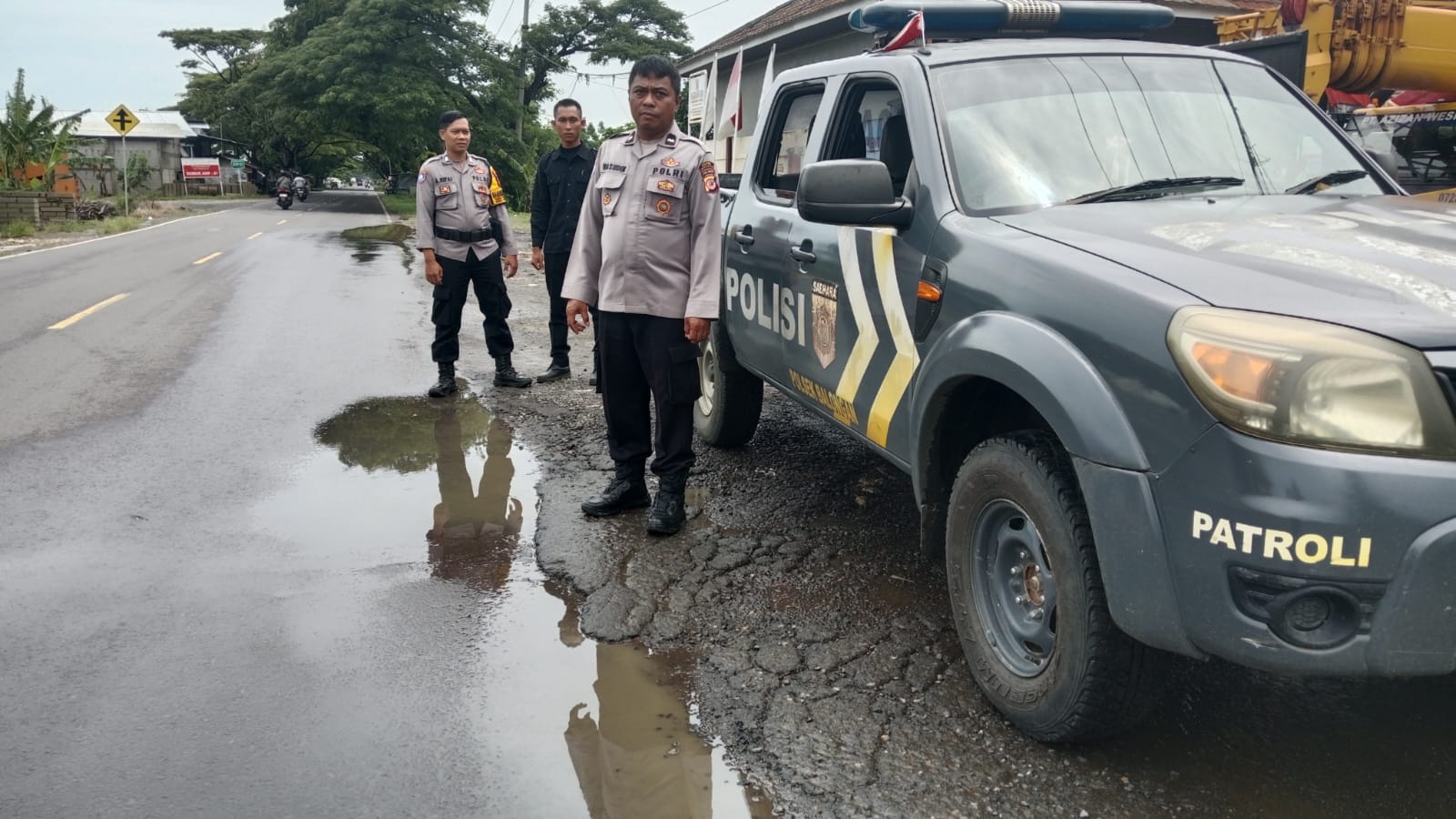 Dalam pelaksanaannya, personel Polsek Balongan juga melakukan pemantauan arus lalu lintas di jalan raya, mengingat kondisi cuaca pasca hujan.
