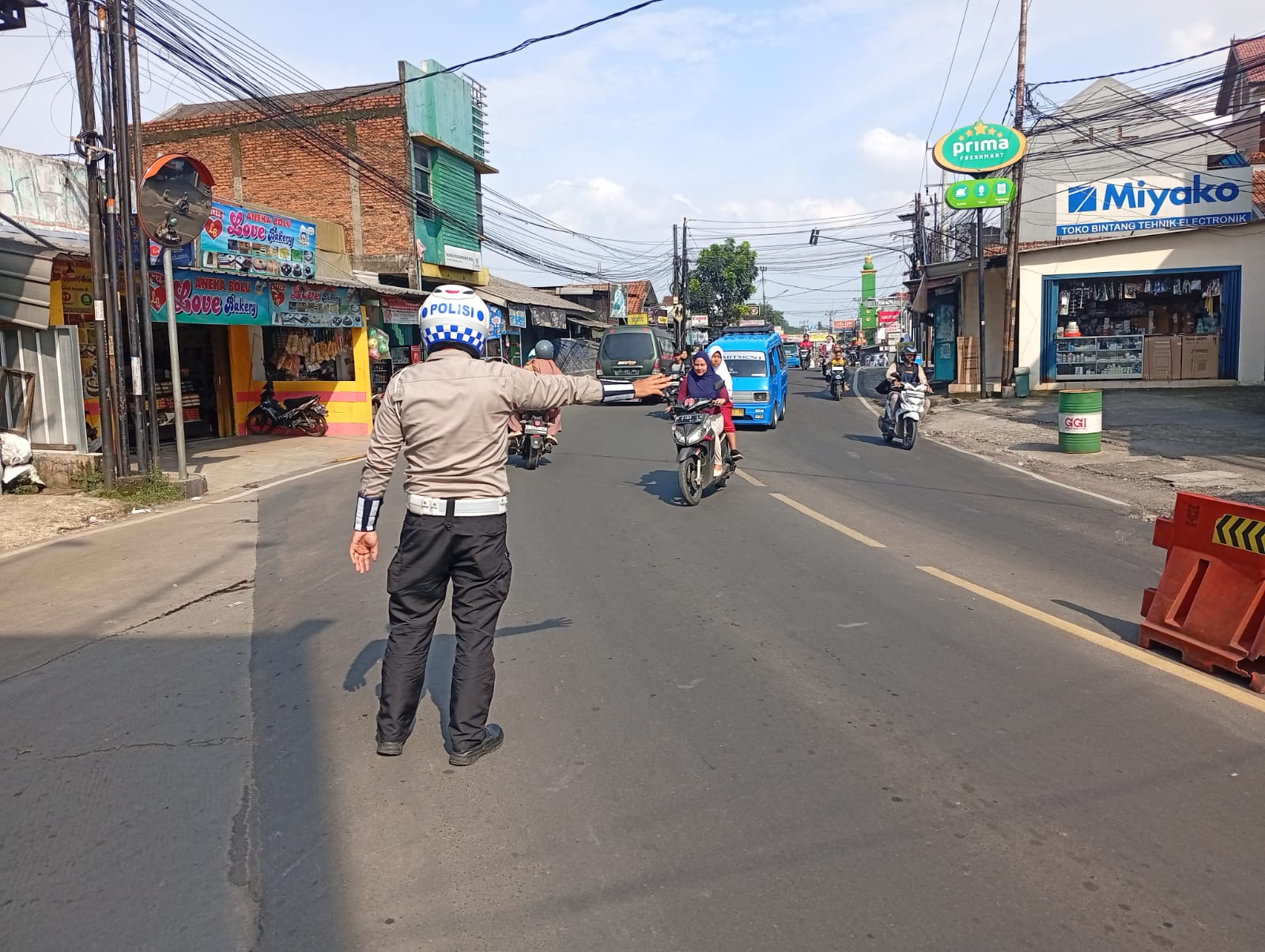 Anggota Lantas Polsek Ciampea Polres Bogor membantu masyarakat mengatur lalulintas dan ketika hendak menyebrang jalan, petugas juga melakukan pengaturan pengendara kendaraan bermotor agar terciptanya kamseltibcarlantas.