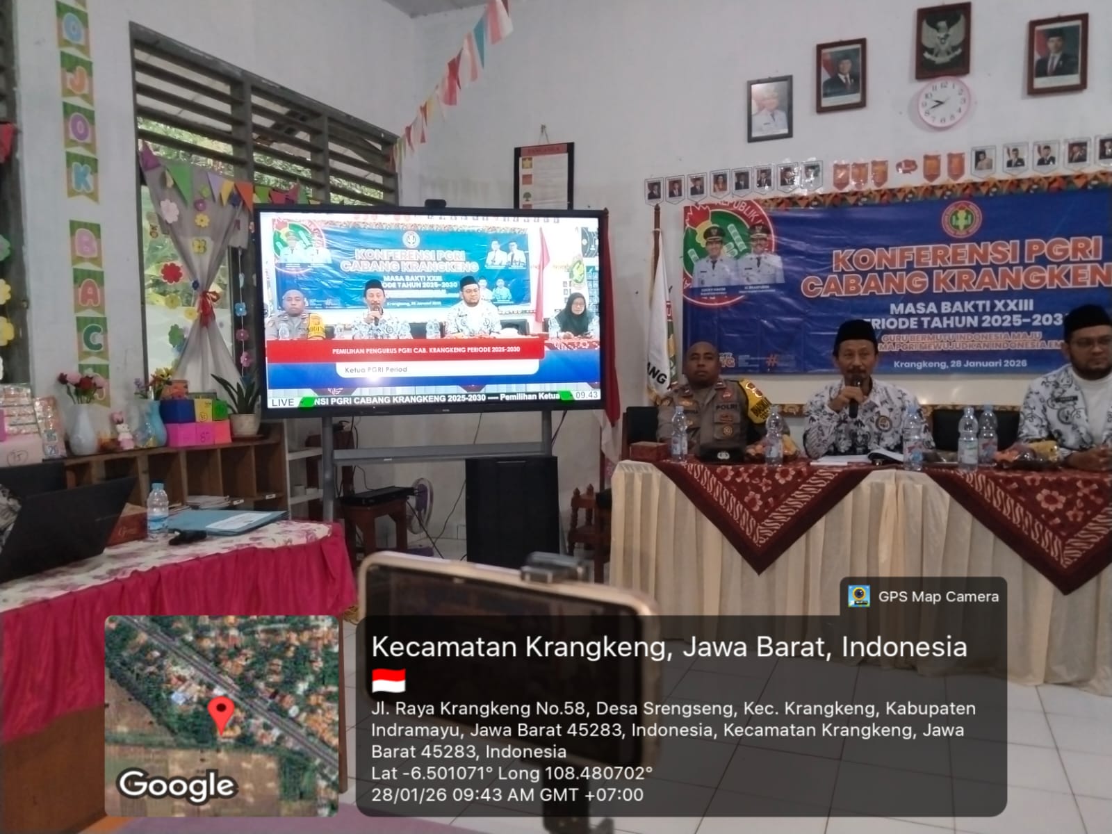 Indramayu – Kepolisian Sektor (Polsek) Krangkeng Polres Indramayu Polda Jabar menghadiri Konferensi Persatuan Guru Republik Indonesia (PGRI) Cabang Krangkeng Masa Bhakti XXIII Periode Tahun 2025–2030 yang digelar di wilayah Kecamatan Krangkeng, Kabupaten Indramayu, Rabu (28/1/2026).