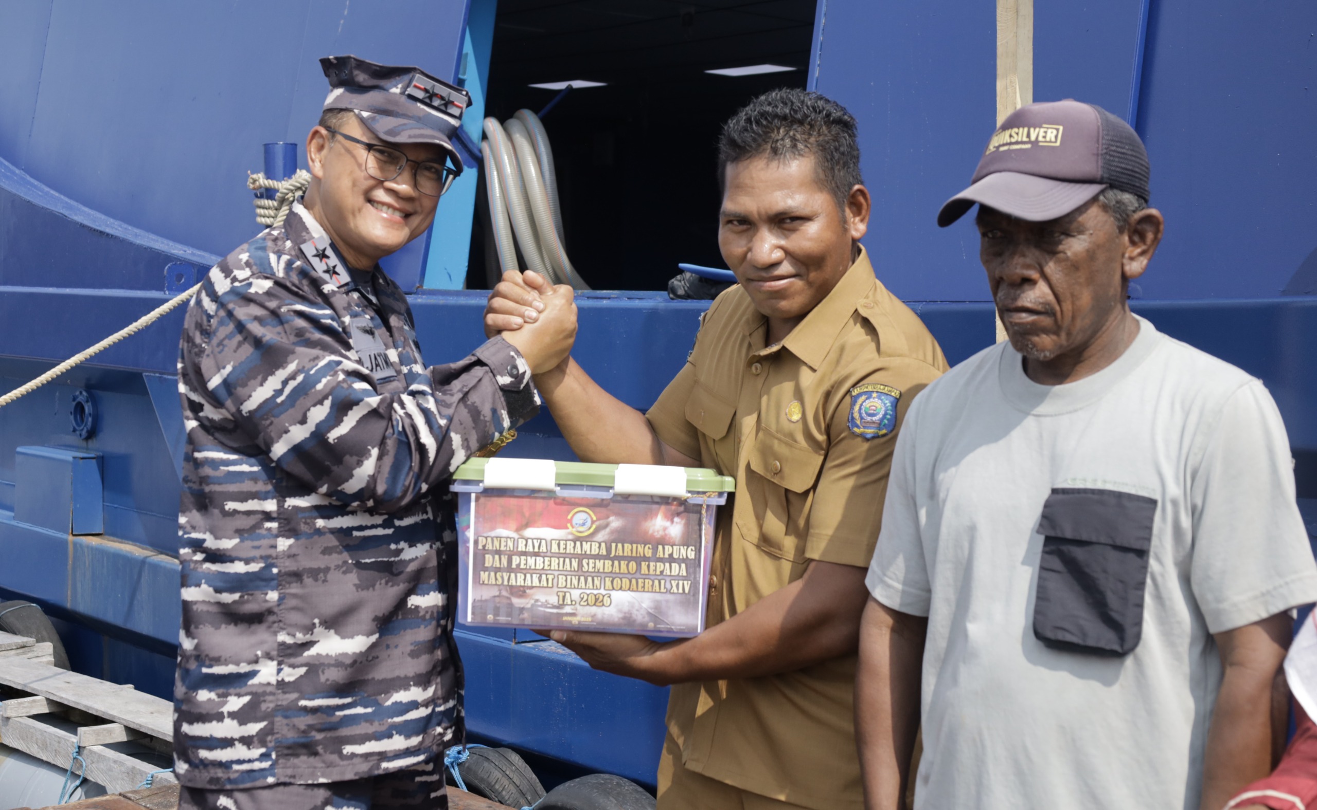 Komandan Kodaeral XIV Gelar Panen Raya Keramba Jaring Apung dan Pemberian Sembako di Kampung Bianci