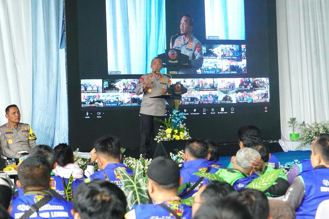 Menjelang Ramadan, ribuan pengemudi ojek online (ojol) dari berbagai daerah di Jawa Barat berkumpul di perbatasan Bojongsoang– Buahbatu, Jumat (13/2/2026). Sekitar 2.500 ojol menghadiri kegiatan “Ngariung Aman” yang digelar Polda Jabar.