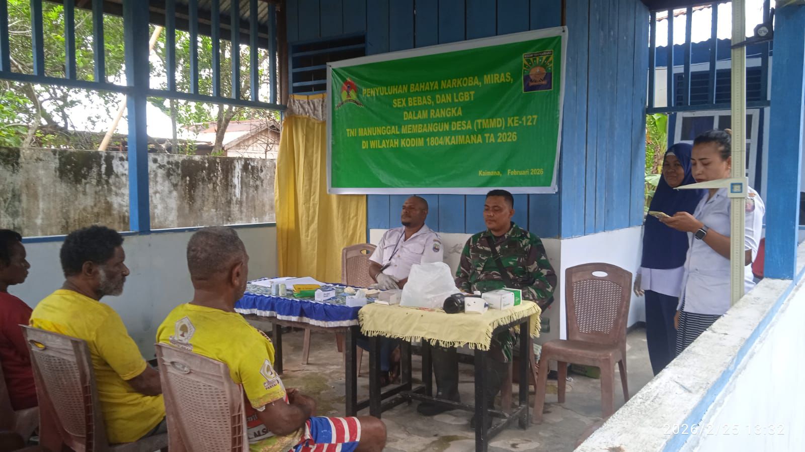 KAIMANA, BUSERJATIM.COM GROUP (26 Februari 2026) – Dalam rangkaian kegiatan TNI Manunggal Membangun Desa (TMMD) ke-127, Kodim 1804/Kaimana melaksanakan sasaran non fisik berupa sosialisasi dan penyuluhan tentang bahaya narkoba, minuman keras (miras), seks bebas dan LGBT di Kampung Sisir, Distrik Kaimana, Kabupaten Kaimana, Kamis (26/02/2026).