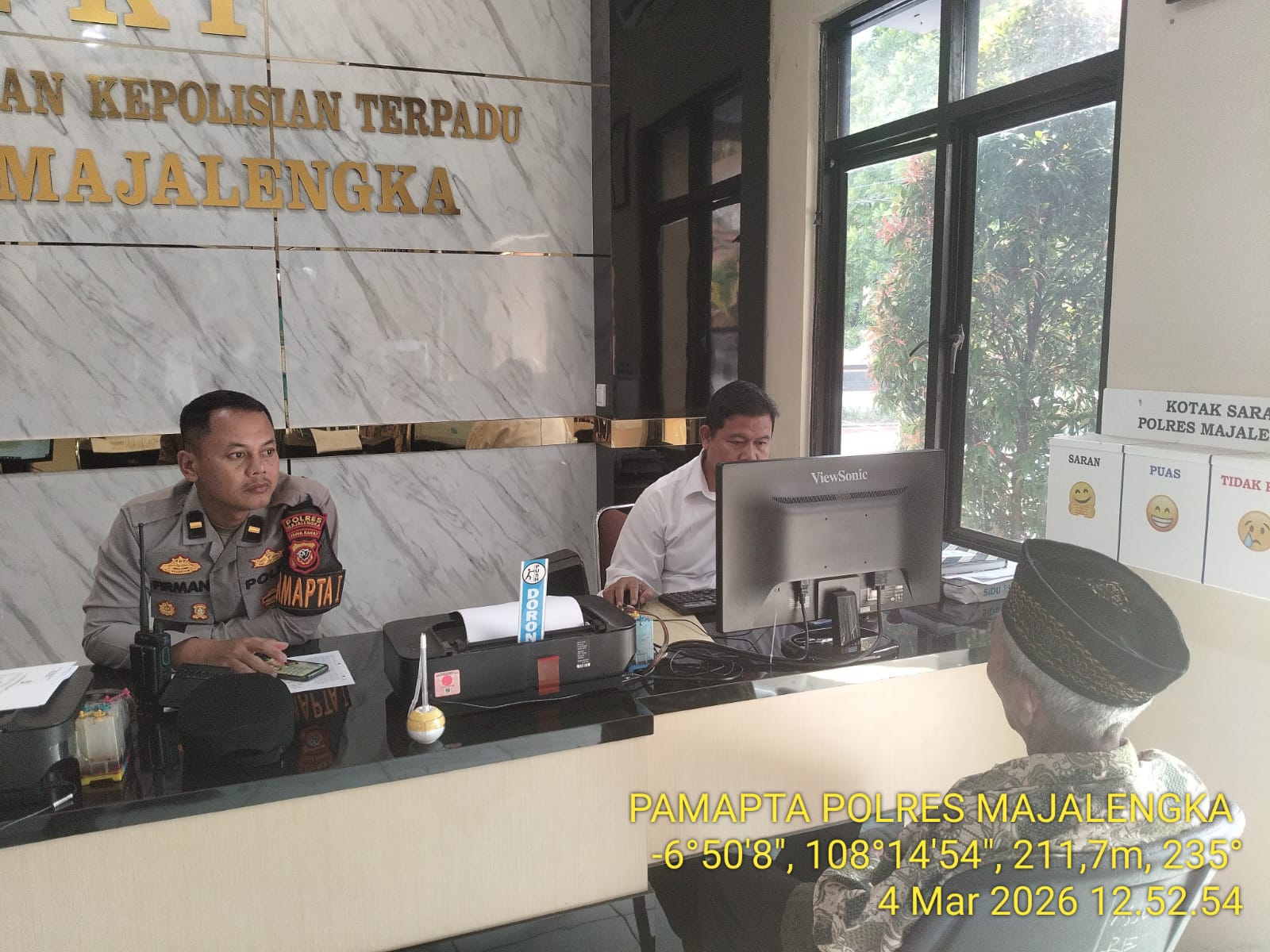 Laporan tersebut diterima langsung oleh Kanit Pamapta 1, Ipda Firman, bersama anggota SPKT Aiptu Amar di ruang pelayanan SPKT Polres Majalengka.