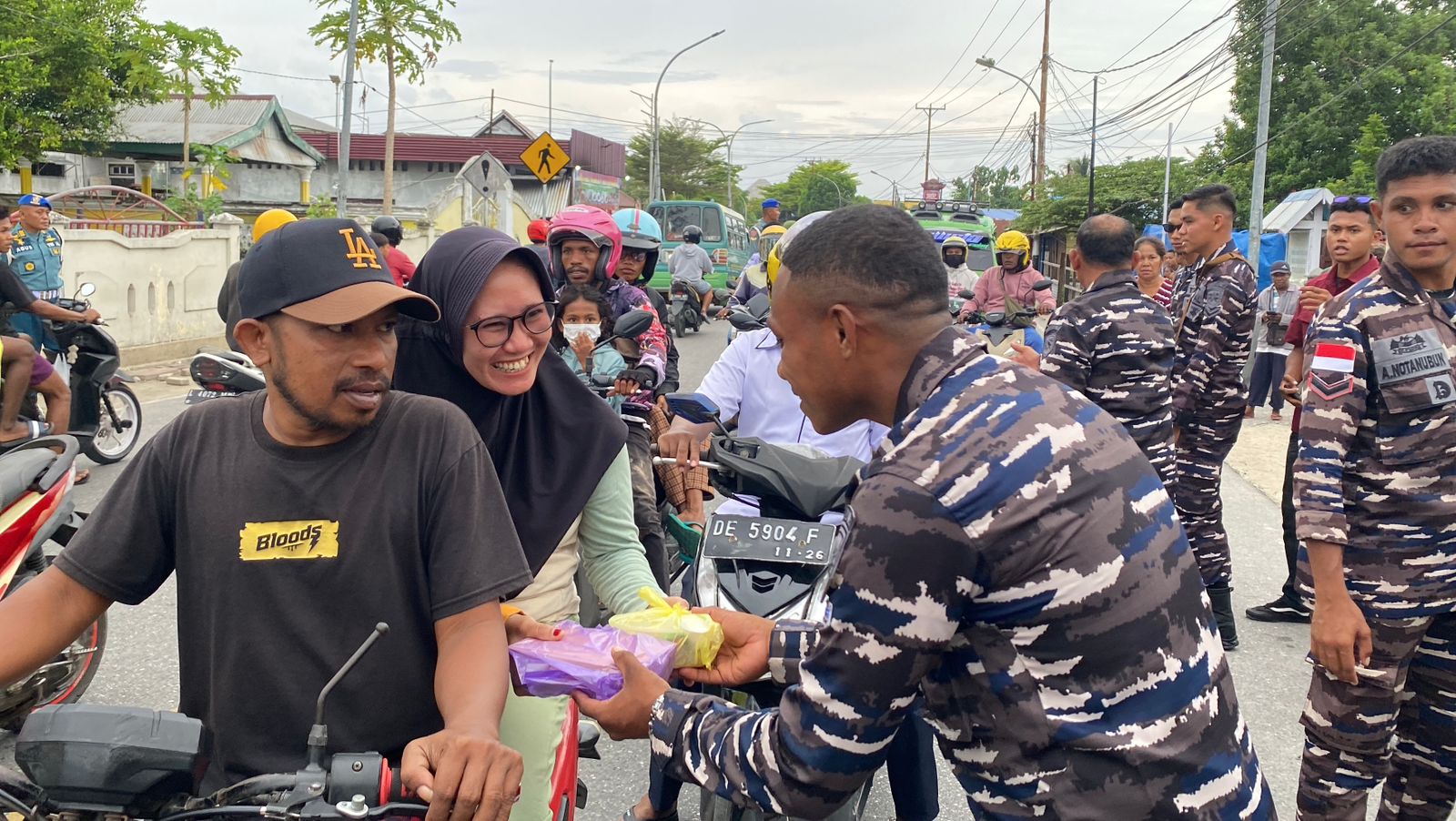 Menjelang waktu berbuka puasa, para prajurit tampak berbaur dengan masyarakat sembari membagikan paket takjil kepada pengemudi ojek, pedagang kaki lima, hingga warga yang masih beraktivitas di sekitar pelabuhan. Kehadiran prajurit TNI AL dengan senyum ramah dan sapaan hangat menciptakan suasana kebersamaan yang penuh keakraban di tengah masyarakat.