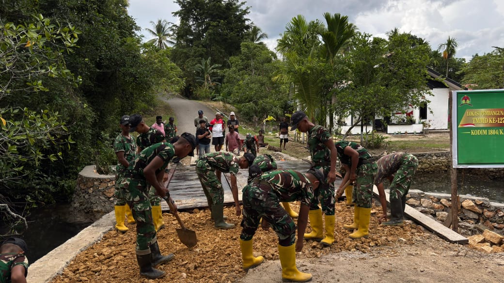 Dalam pelaksanaannya, personel TNI bersama masyarakat setempat bergotong royong mengerjakan penimbunan dan perapian bagian ujung jembatan. Kehadiran TMMD tidak hanya fokus pada pembangunan fisik, tetapi juga memperkuat kemanunggalan TNI dengan rakyat melalui kerja bersama di lapangan.