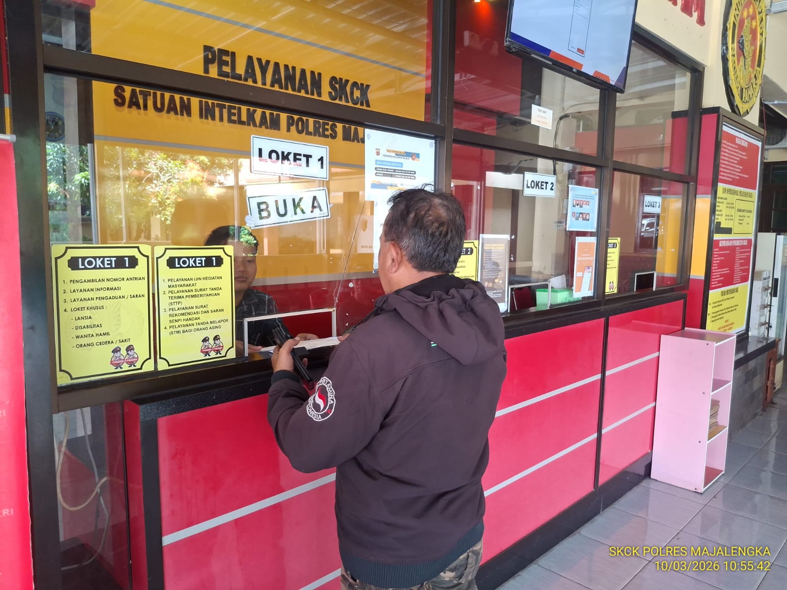 Majalengka, Dalam upaya terus memberikan pelayanan terbaik kepada masyarakat, Satuan Intelijen Keamanan (Sat Intelkam) Polres Majalengka mengoptimalkan layanan pembuatan Surat Keterangan Catatan Kepolisian (SKCK). Kegiatan pelayanan ini berlangsung dengan tertib dan mengedepankan sikap humanis di Ruang Pelayanan SKCK Sat Intelkam Polres Majalengka pada Selasa (10/3/2026).