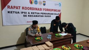 Rakor bersama IPSI dan Ketua Ranting / pengurus Perguruan Silat wilayah Sugio dalam rangka membuat kesepakatan bersama menjaga kondusifitas Kamtibmas pada bulan romadhon dan hari raya idul Fitri 1447 H / 2026, dihadiri sekitar kurleb 25 orang. Selasa (17/3/2026) Pukul 16.00 Wib s.d selesai.
