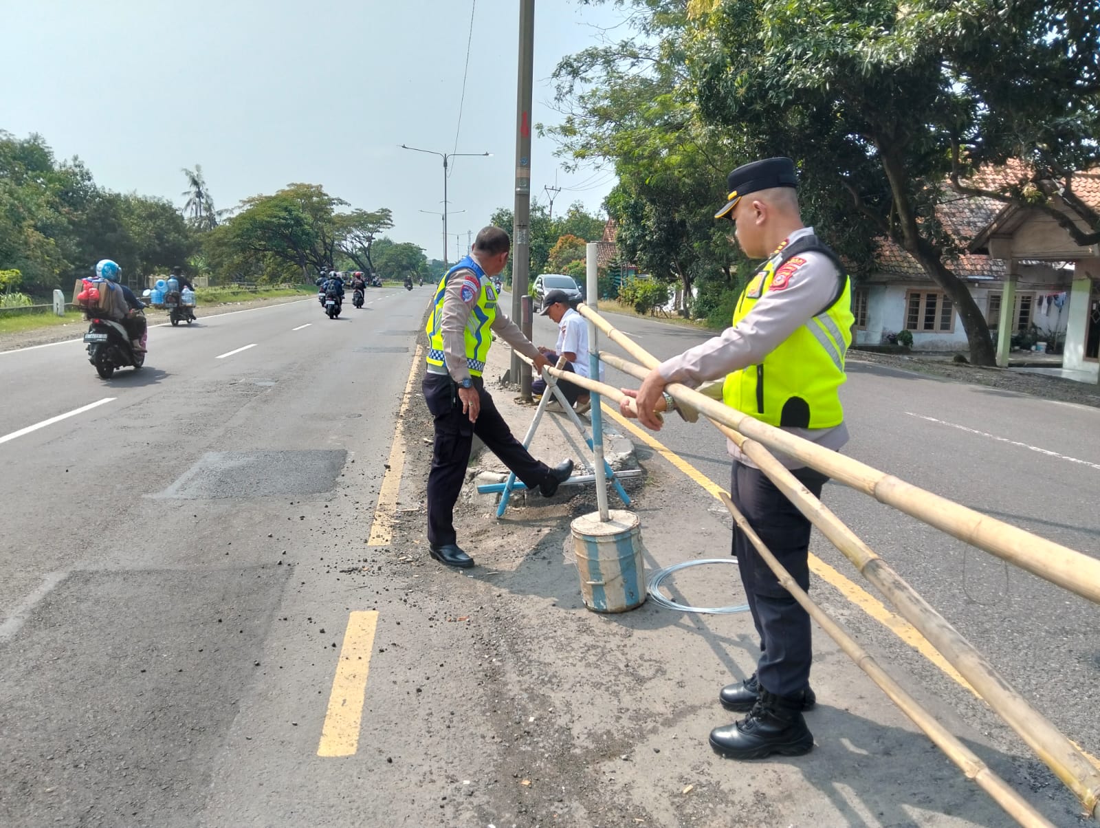 Jaga Kelancaran Arus Mudik, Polsek Sukagumiwang Perbaiki Kembali Pembatas U-Turn Ilegal yang Rusak di Jalur Pantura