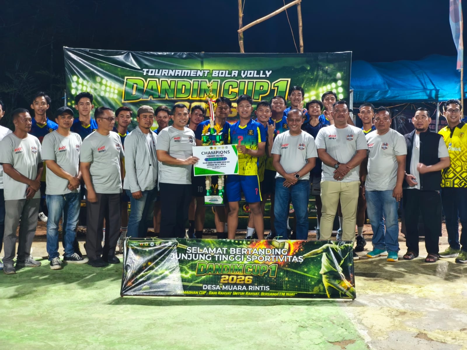 HULU SUNGAI TENGAH, BUSERJATIM.COM GROUP – Turnamen Bola Voli Dandim Cup Season 1 Tahun 2026 resmi ditutup oleh Dandim 1002/Hulu Sungai Tengah, Letkol Inf Ardiansyah Okta Putra Siregar, di Muara Rintis, Kecamatan Batang Alai Utara, Kabupaten Hulu Sungai Tengah, Selasa (17/03/2026) malam.
