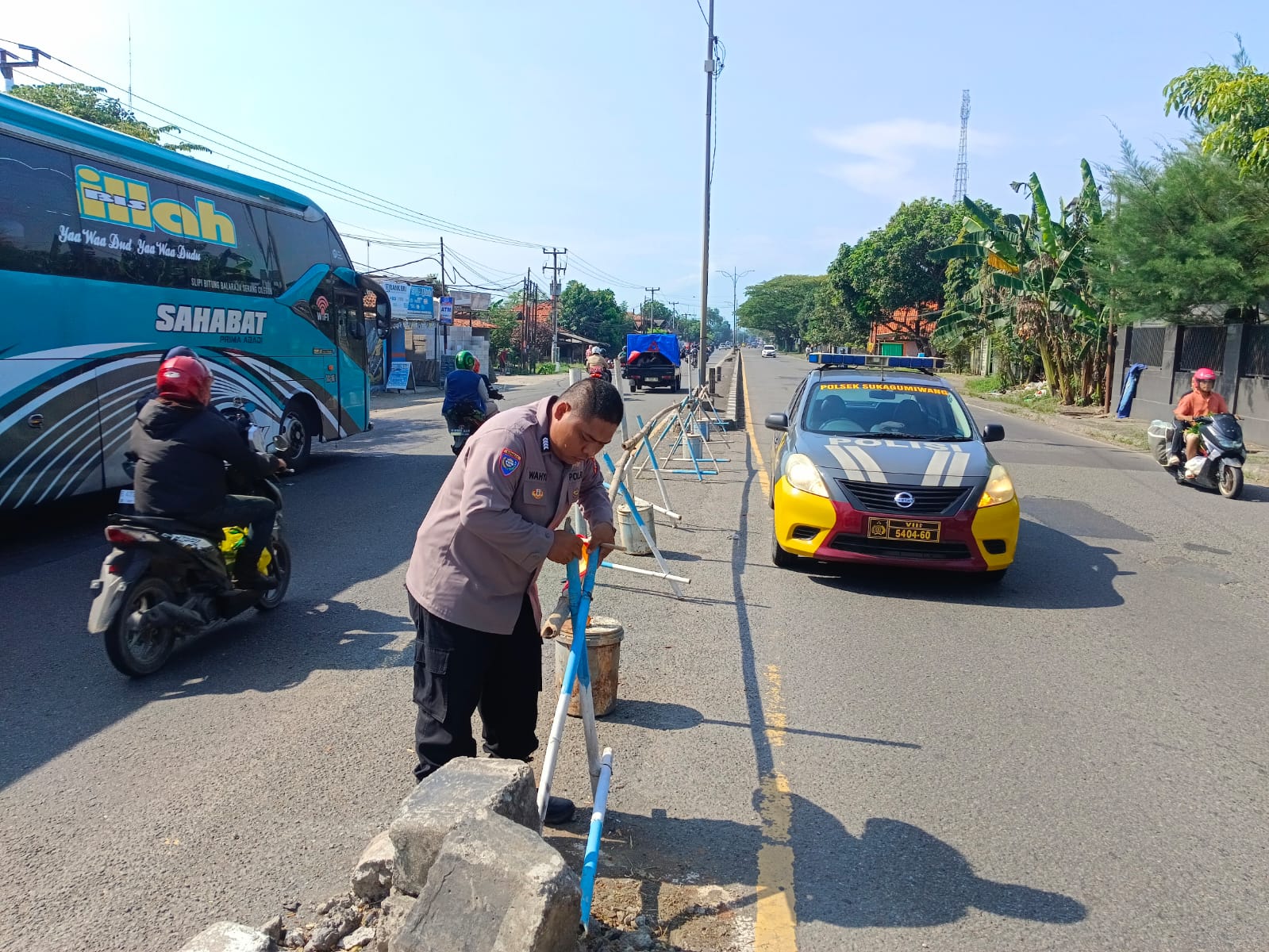 INDRAMAYU,- Guna menjamin keselamatan para pemudik yang melintasi jalur utama Pantura, Polsek Sukagumiwang Polres Indramayu Polda Jabar kembali melakukan langkah preventif dengan memperbaiki dan memperkuat penutupan titik putaran balik (U-turn).