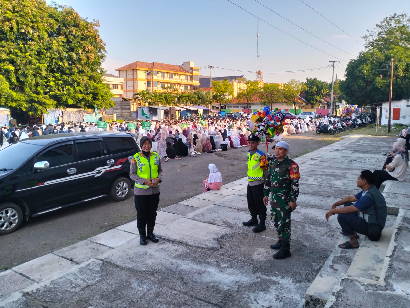 Untuk memastikan kelancaran ibadah, Polsek Indramayu bersama unsur TNI dan instansi terkait melakukan pengamanan ketat di sekitar lokasi kegiatan.